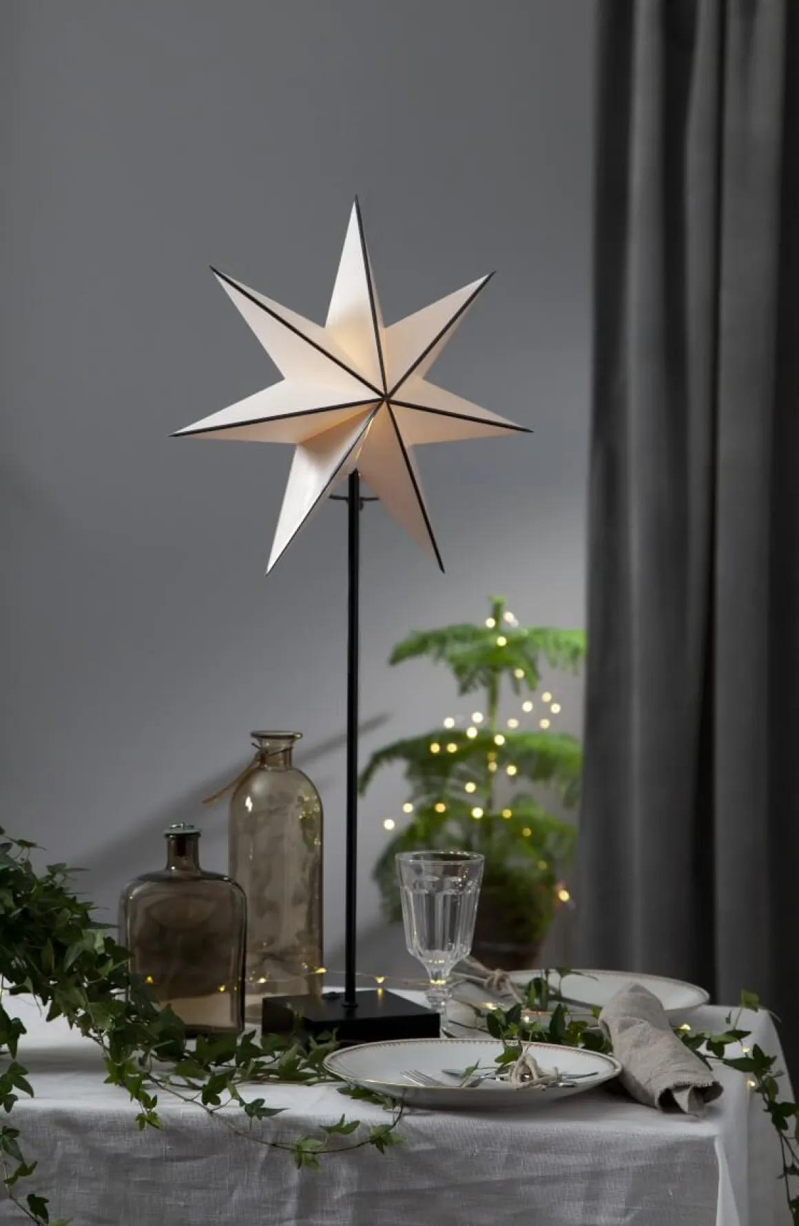 Så klockren liten nyhet från Star Trading, vit stjärna på fot med batteridrift!! Nu kan du dekorera vart du vill utan alla hemska sladdar! Som på julbuffen kanske? Av och på knappen hittar du på ovansidan av lampfotens bas! Här är det någon som har tänkt till! Toppen!