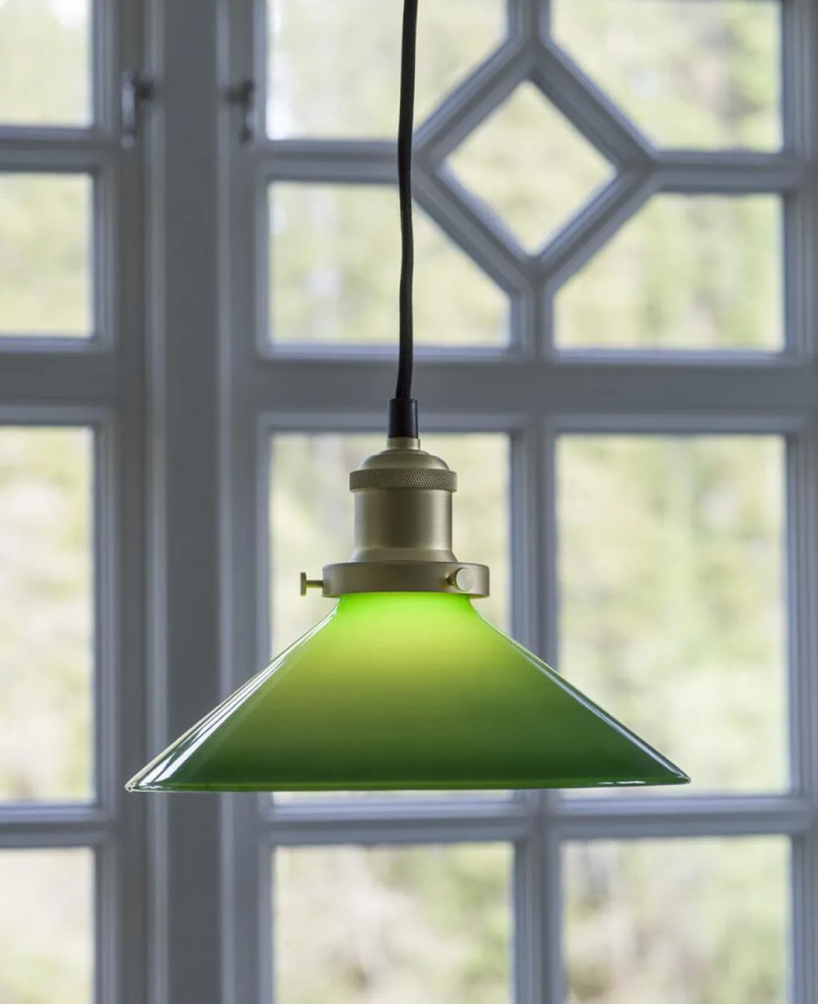En klassiker som de flesta av oss känner igen 🙂 Här från PR-Home i 25cm grönt glas med upphäng i mässing. Skomakarlampan gör sig lika väl i ett fönster som över köksön.