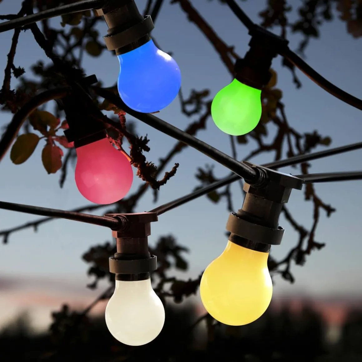 Färgad blå klotlampa med en B22 Sockel, passar perfekt till partybelysningen.