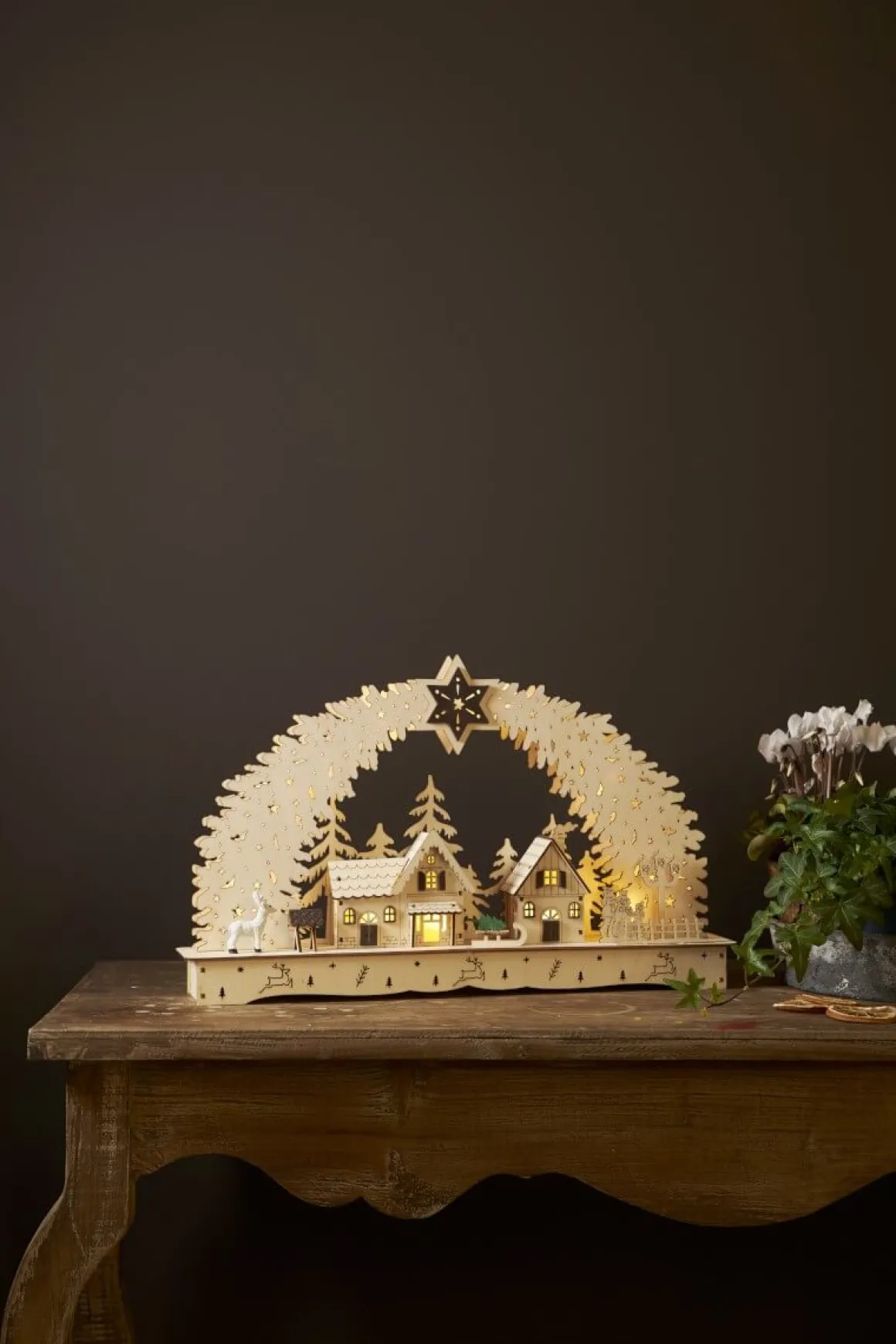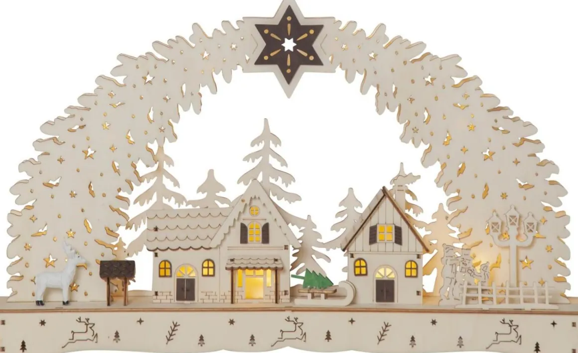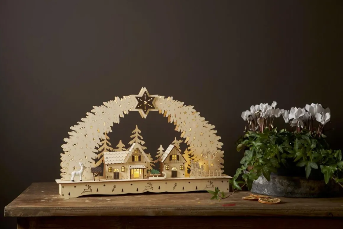 Så härlig juldekoration från Star Trading i laserskuret trä. Bamberg är Naturfärgad med några få bruna inslag och en gran som har fått äran att sticka ut. 10 stycken små varmvita ljuspunkter lyser upp dekorationen med ett varmt och mjukt sken. Bamberg drivs med 2 stycken AA batterier (ingår ej) och den har självklart en inbyggd timer som gör det lätt för dig att ställa in när du vill att den ska lysa.