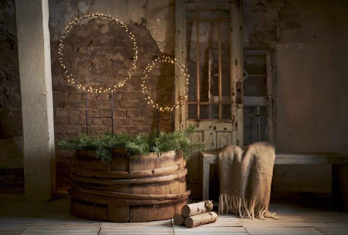 Så läcker siluett i form av en cirkel att montera utomhus i en kruka eller på friland (eller inomhus om du vill det) Här ser du Stora Barlumi med hela 120 små varmvita ljuspunkter som lyser upp i mörkret.