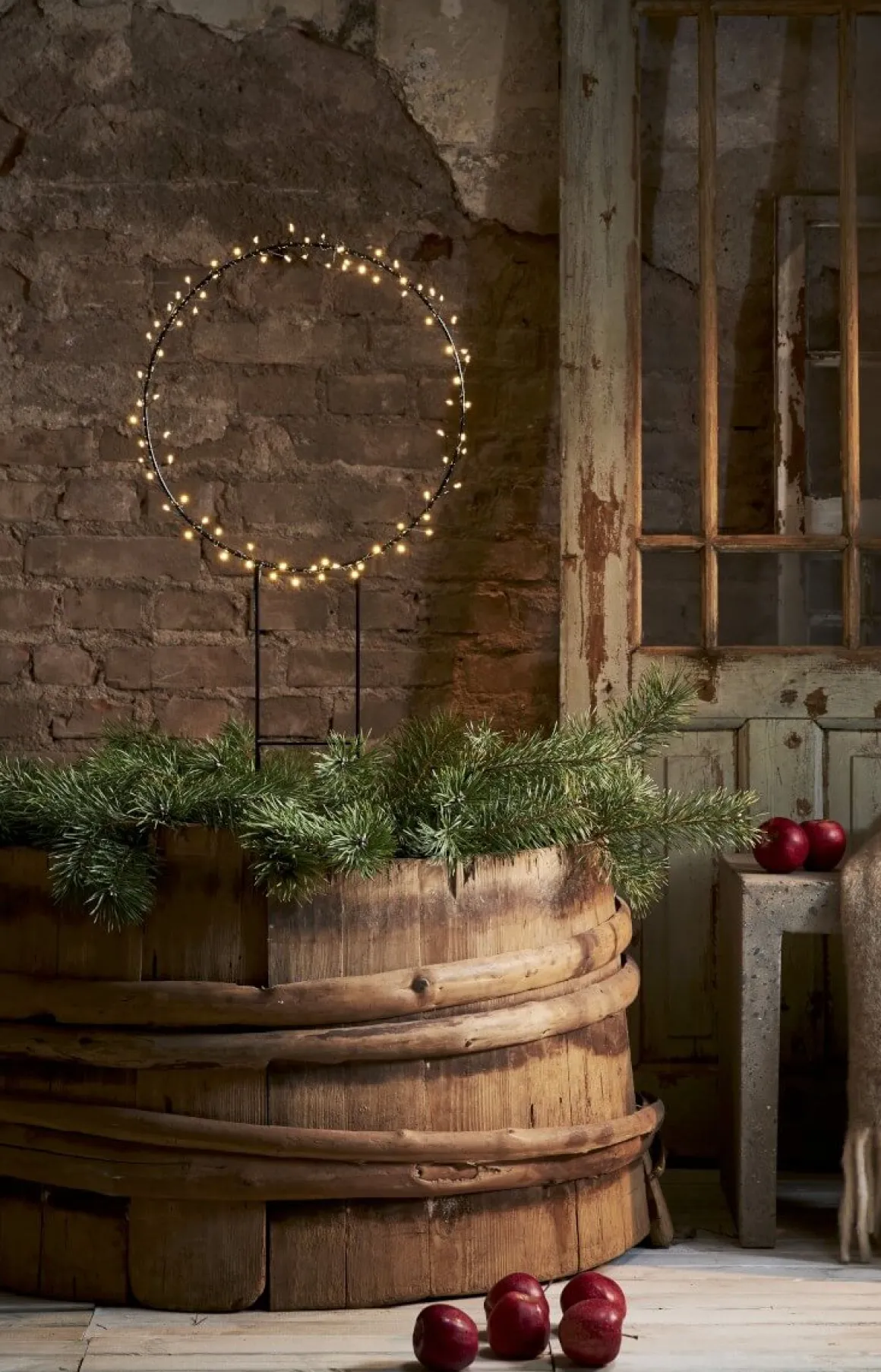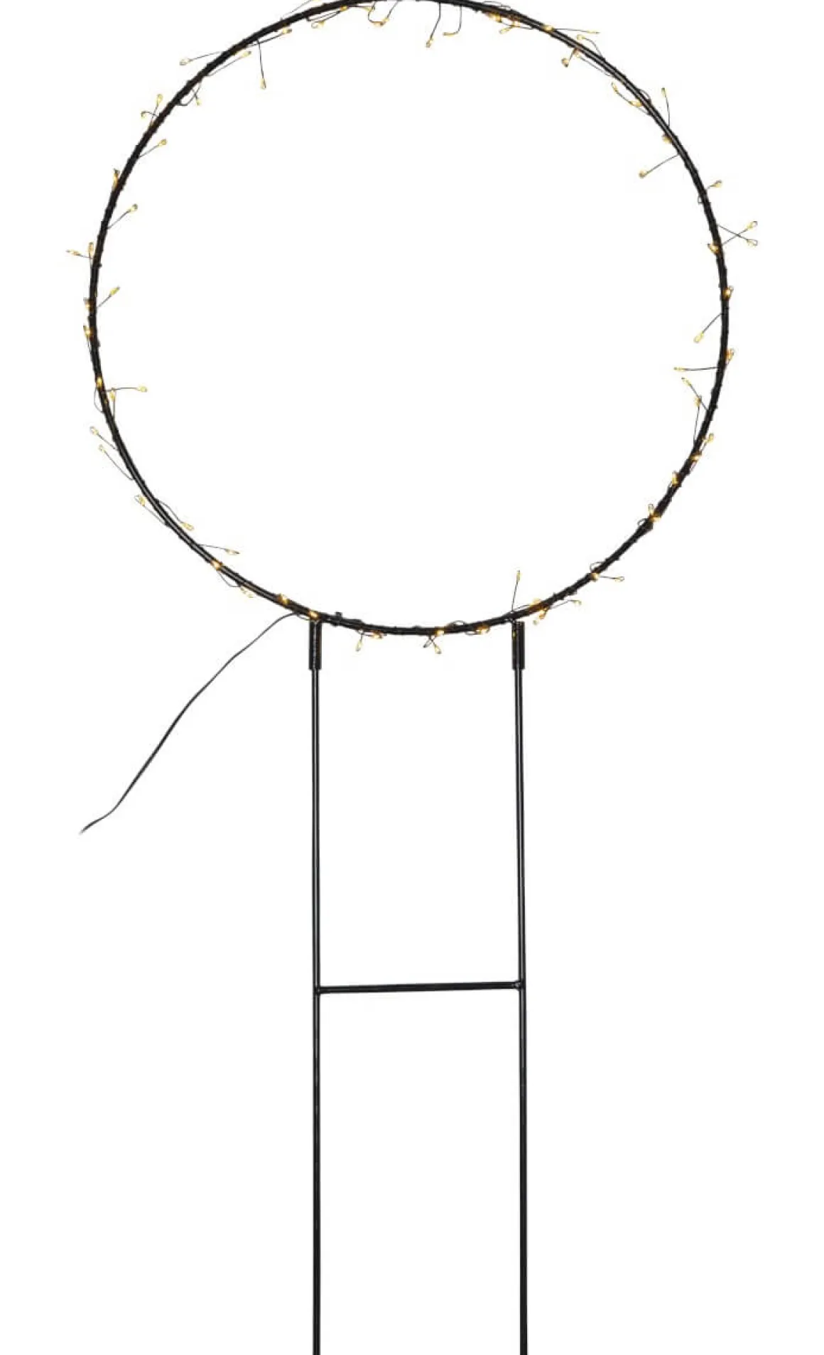 Så läcker siluett i form av en cirkel att montera utomhus i en kruka eller på friland (eller inomhus om du vill det) Här ser du Lilla Barlumi med hela 100 små varmvita ljuspunkter som lyser upp i mörkret.