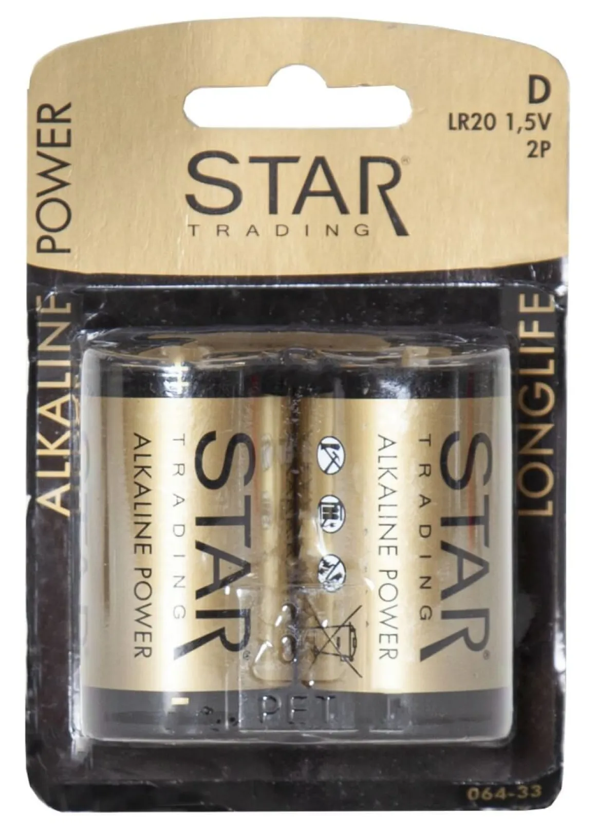 2-pack Alkaline batteri av D modell. Longlife, 18000mAh