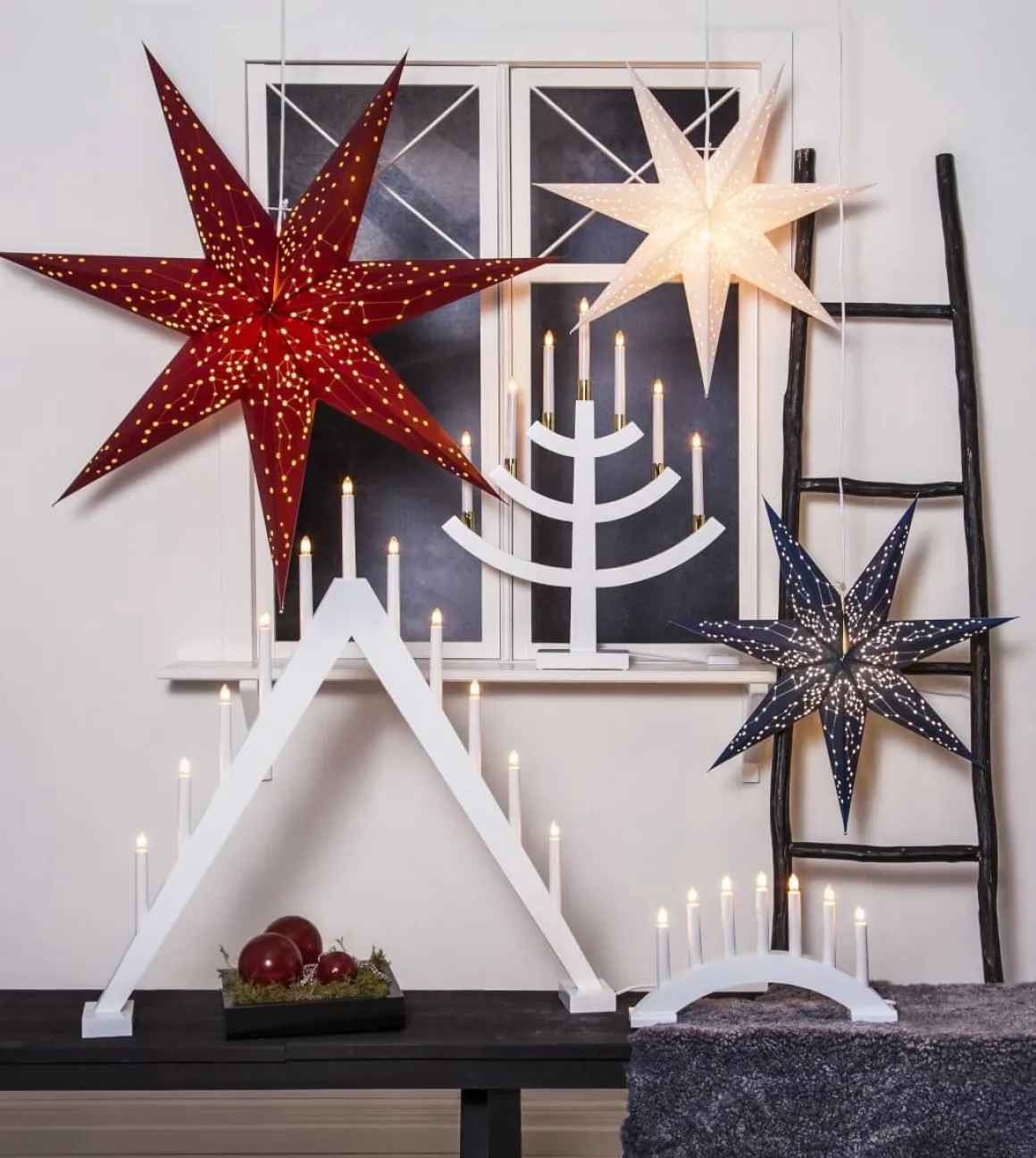 En prisvärd liten juleljusstake från Star Trading med 7 små lampor som ger ett varmt och inbjudande ljus i ditt hem. Bea Finns i 6 färger, här ser du henne i vit.