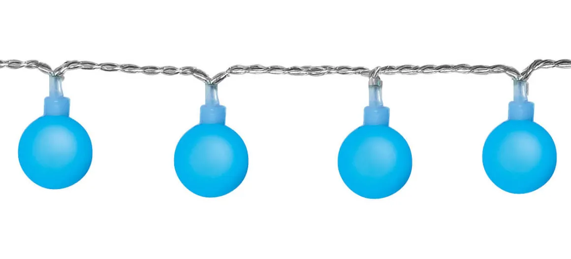 Ljusslinga med 50 LED-ljuskällor i härlig mjuk blå färg för utomhusbruk såväl som inomhusbruk. Dekorera partytältet, kalaset och terrassen med denna vackra ljusslinga. Slingan är 7,35 meter lång med transparant kabel.