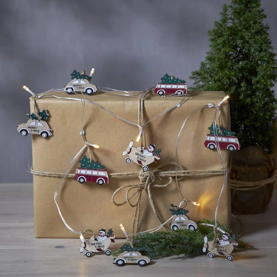 Såååå söt liten batteridriven slinga med laserskurna små träfigurer som löper längs med hela slingan. Perfekt dekoration för barnrummet.
