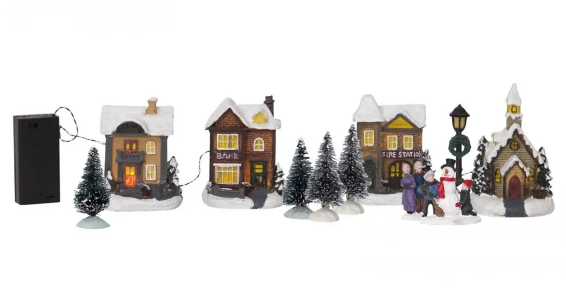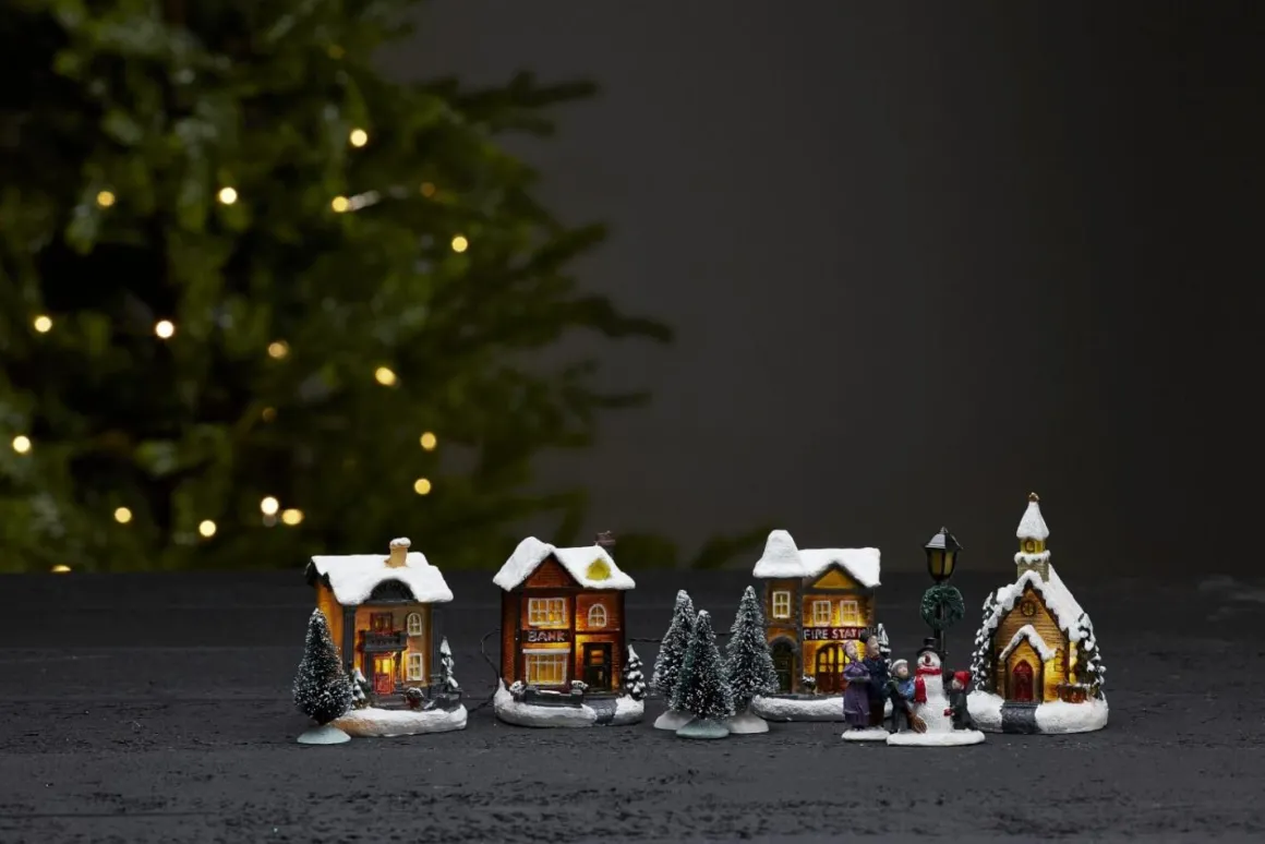 Alltså det här är så gulligt så jag nästan dör! En hel liten miniby med härligt klara färger! Drivs gör den med batteri så du kan placera den precis vart du vill.