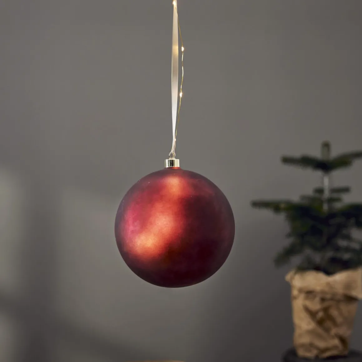 Glaskula från Star Trading i läcker matt röd färg, den vackra dew drop slingan följer längs dekorationsbandet och in i glaskulan, 13 Led längst med dekorationsbandet och 7 Led i kulan. Denna söta julkula på 21 cm ger ett vackert stämningsfullt sken. Batteridriven med en inbyggd timer som gör det lätt för dig att ställa in när produkten ska lysa. Dekorera med glaskulan till jul och advent, perfekt juldekoration som ger en magiskt stämning i ditt fönster eller inne i rummet.