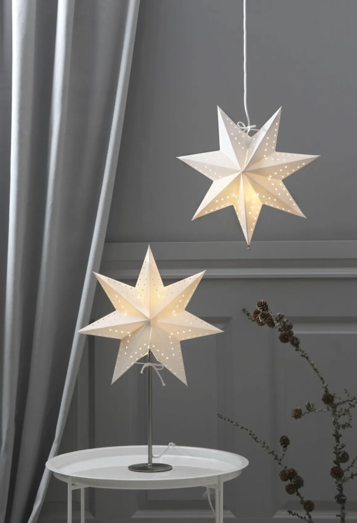 Stjärna på fot från startrading i klassisk vit färg. Stjärnan är fint mönstrad och gör sig väldigt bra i ett fönster. Sprider härlig julstämning i huset.
