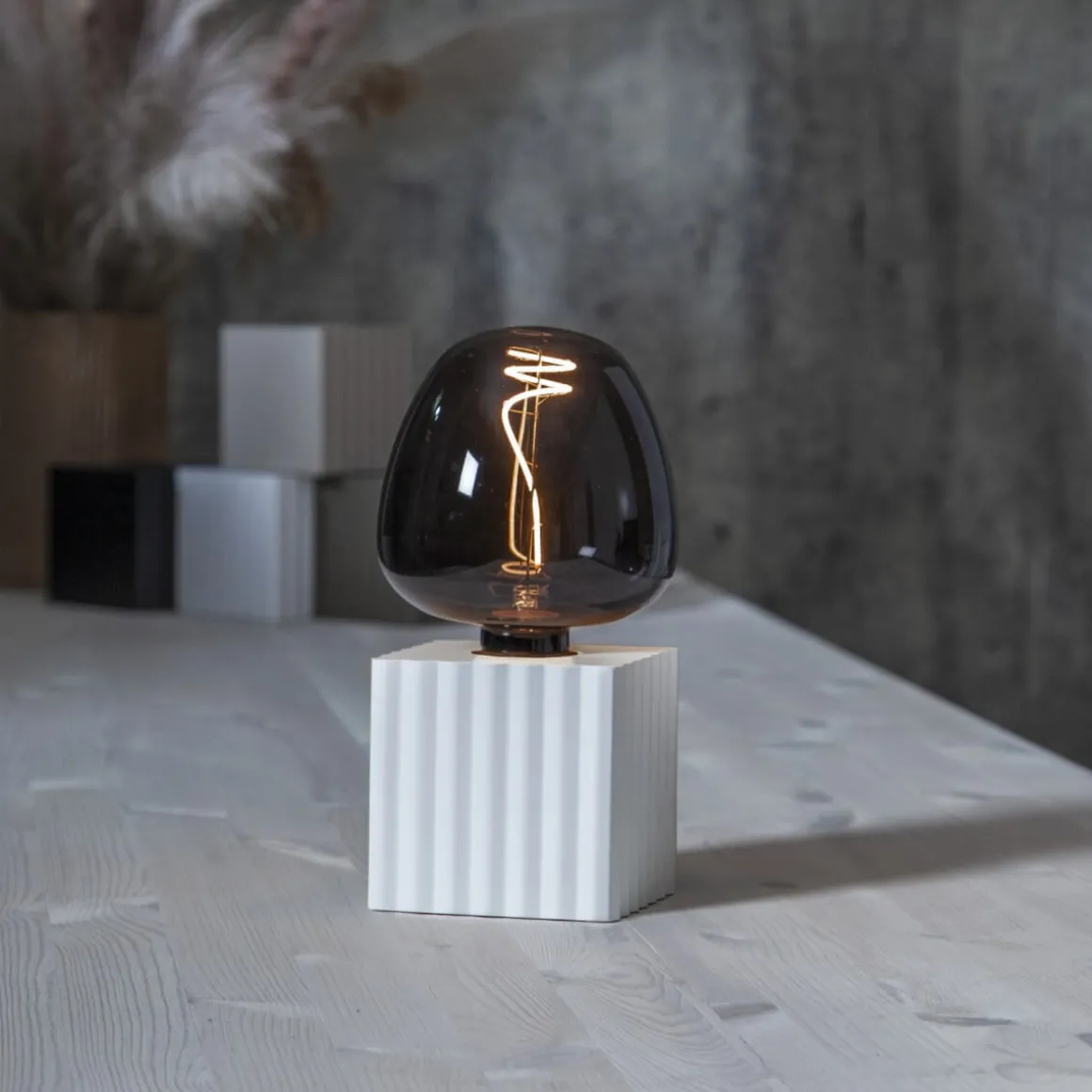 Vit lampfot med ribbat strukturmönster från välkända Star Trading, tillverkad av trä med E27 sockel. Kombinera lampfoten med en snygg dekorations ledljuskälla för ett elegant intryck. Gör sig bra både på bord och i fönster.