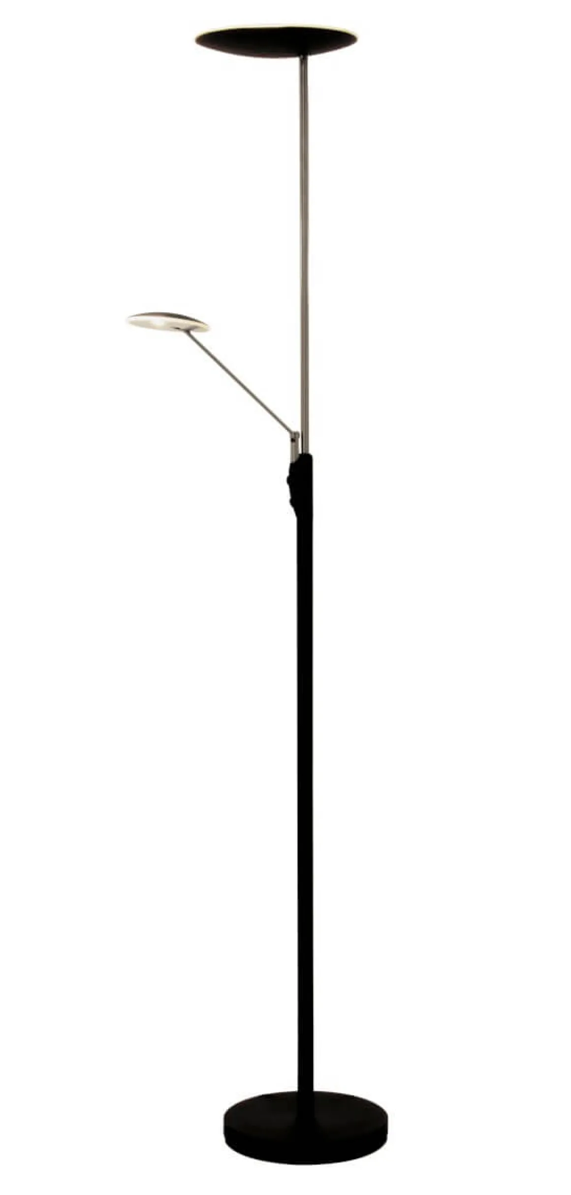Cadiz Uplight i den läckra kombinationen vit/krom. Cadiz har en liten frostad yta över ljuskällan på läsarmen som gör att du får en något bredare ljusbild, perfekt om du ska läsa en tidning eller lösa korsord i favoritfåtöljen. Dimmer sitter monterad på mitten av lampan en till var ljuskälla.
