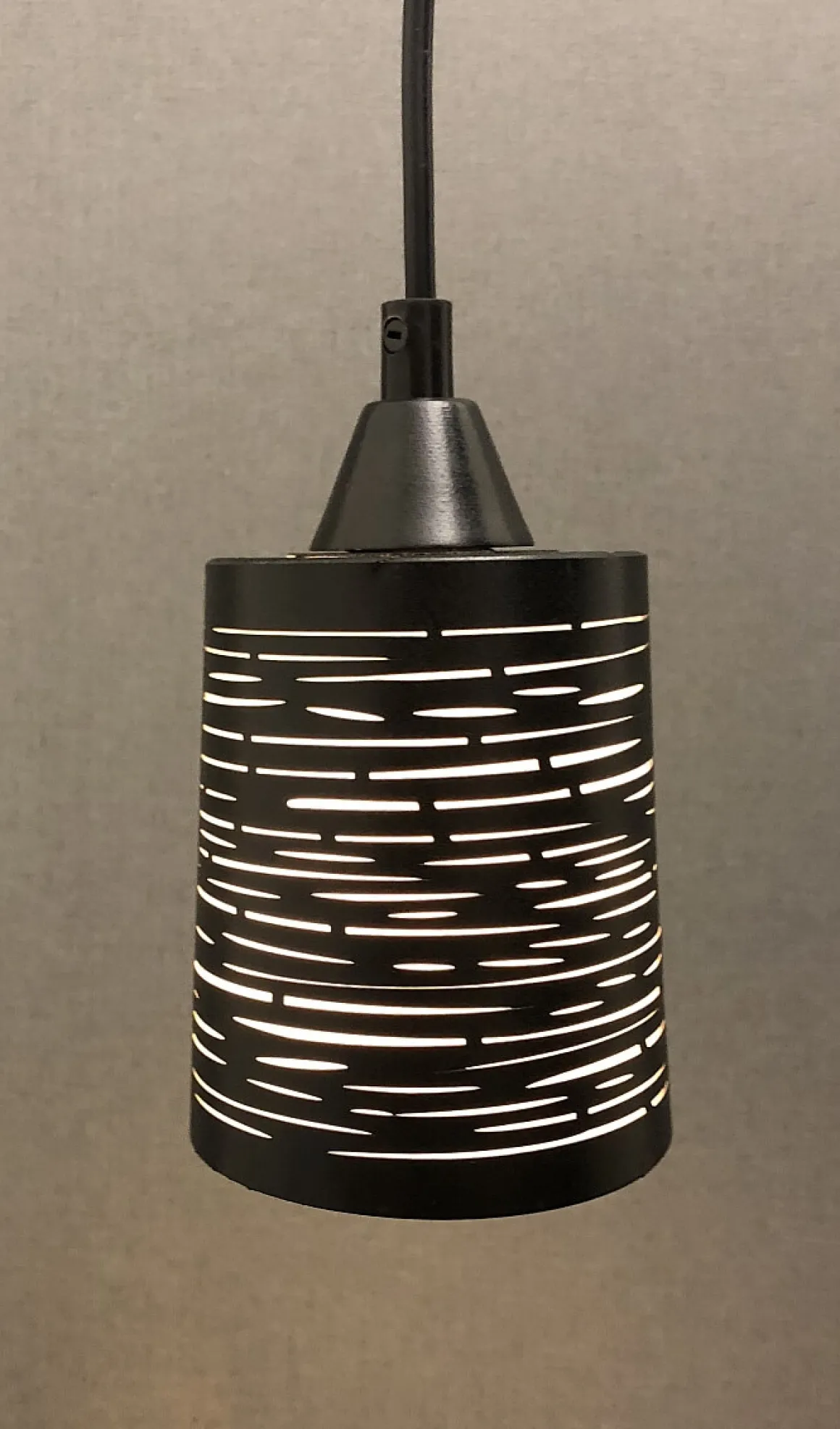 En nyinkommen liten serie lampor som snabbt vunnit mark i butiken och med sin enkelhet passar de in precis överallt. Tillverkad i laserskuren metall och dova ljusa färger, här ser du Candy i svart.