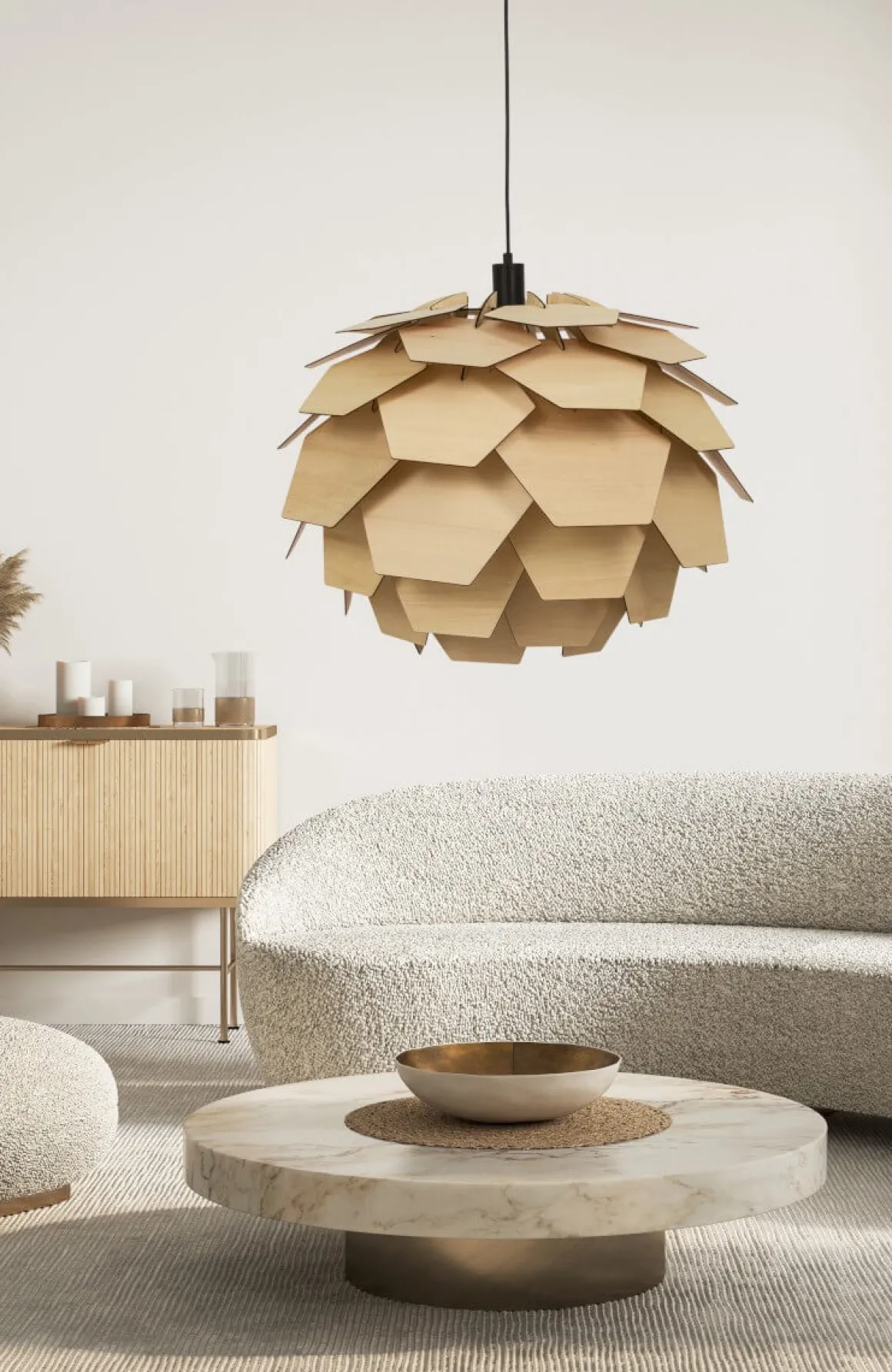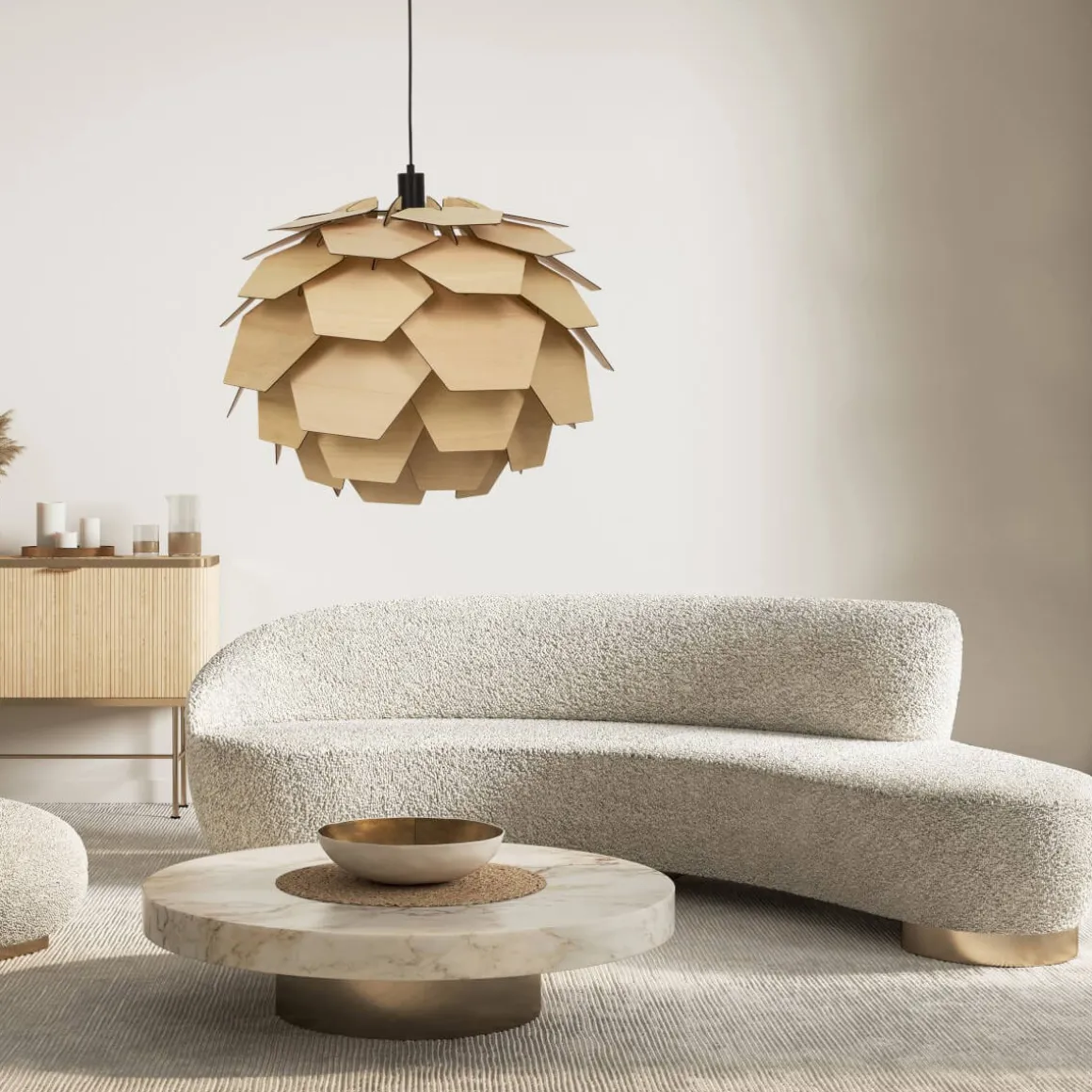 Vackra Carpatica taklampa med flera lager av trälameller. Carpatica har en design som påminner om en rund kotte. Lampan ger ett dämpat, väldigt trivsamt ljus som är perfekt i vardagsrummet eller över matbordet. Carpatica levereras i ett platt paket så du monterar själv ihop lampan i några enkla steg. Svart takkopp med krokupphäng för snabb och smidig installation.