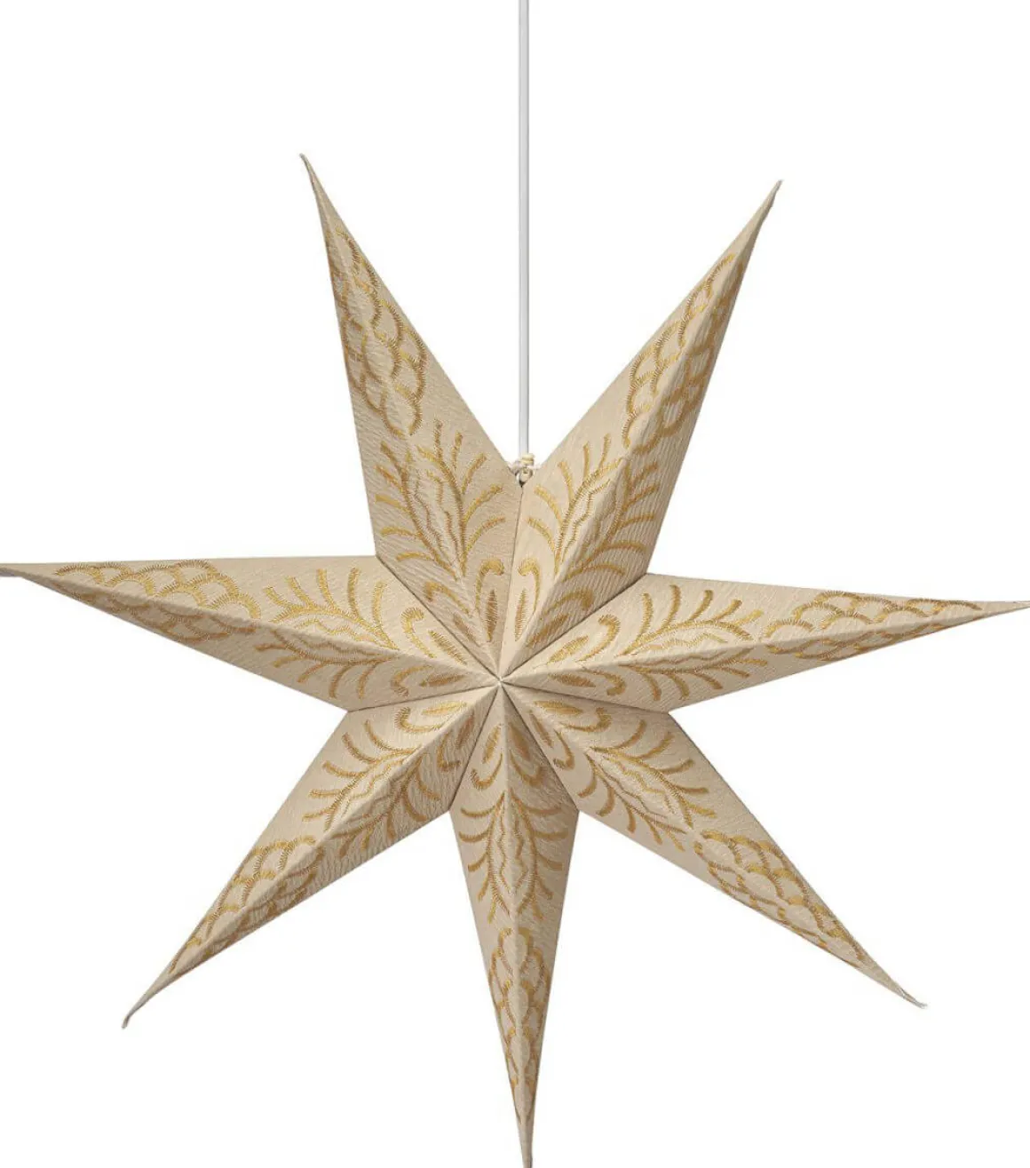 Celeste är en vacker julstjärna från PR-Home tillverkad i papper av en lite kraftigare kvalitet med brodyr i kontrastfärg. Stjärnan stängs med hjälp av band och en dragsko. Celeste finns i fyra härliga färger, här ser du henne i vitt. Sladdställ och ljuskälla ingår ej.