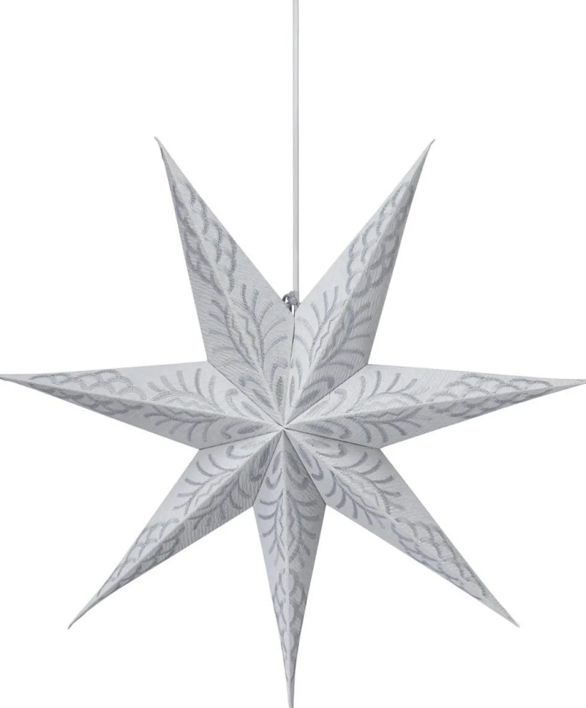 Celeste är en vacker julstjärna från PR-Home tillverkad i papper av en lite kraftigare kvalitet med brodyr i kontrastfärg. Stjärnan stängs med hjälp av band och en dragsko. Celeste finns i fyra härliga färger, här ser du henne i grått. Sladdställ och ljuskälla ingår ej.