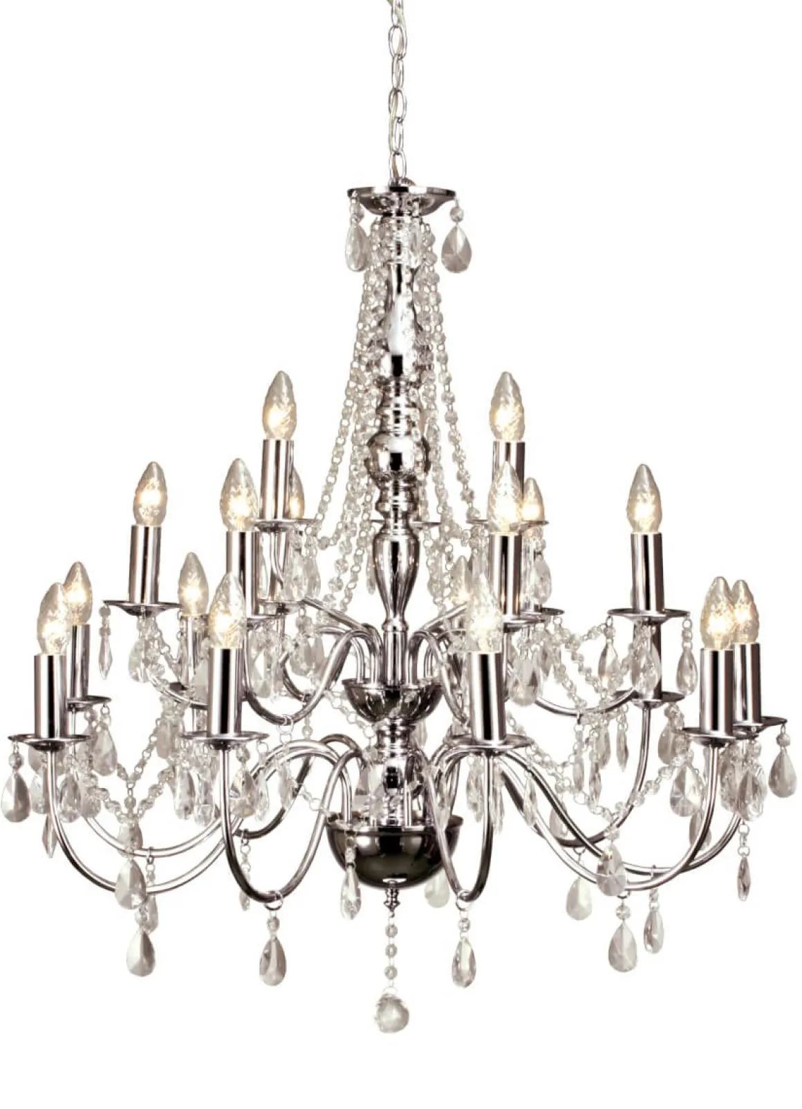 Om du är på jakt efter en stooor kristallkrona för ett riktigt bra pris då är Chateau rätt för dig. Fast okej det går inte få tag på en riktig kristallkrona i denna storleken till så lågt pris så prismorna är tyvärr gjorda av glas, men jag vågar lova att Chateau ger dig det där pampiga intrycket du är ute efter. WOW!