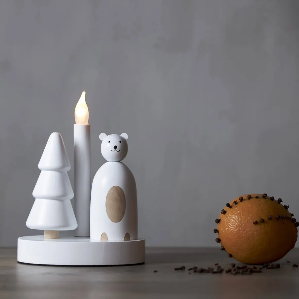 Julens härligaste dekoration i form av en svarvad isbjörn och gran med 1 ljus från Star Trading. Liten söt adventsljusstake tillverkad i trä.Led lampa ingår. Placera den i ett fönster eller och på en skänk. Härlig adventsljusstake att dekorera med till jul.