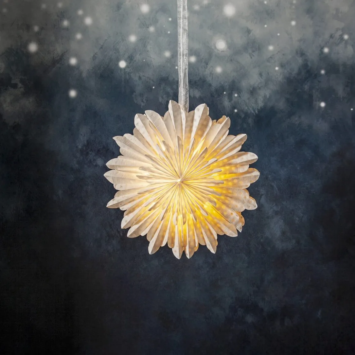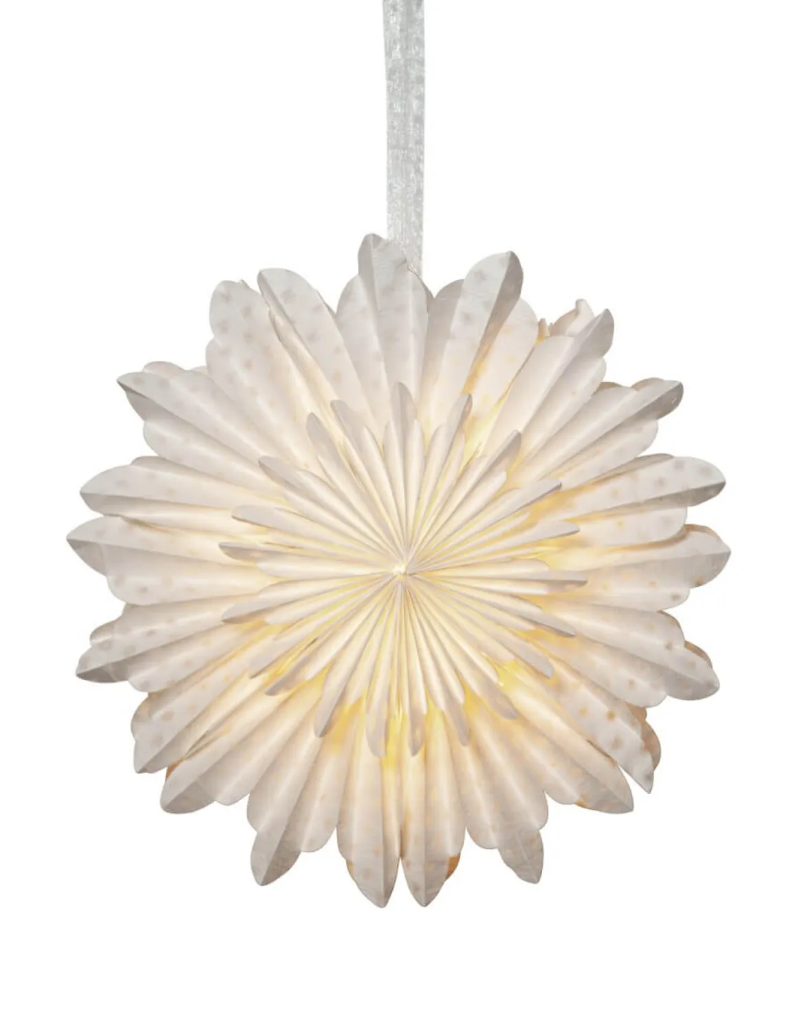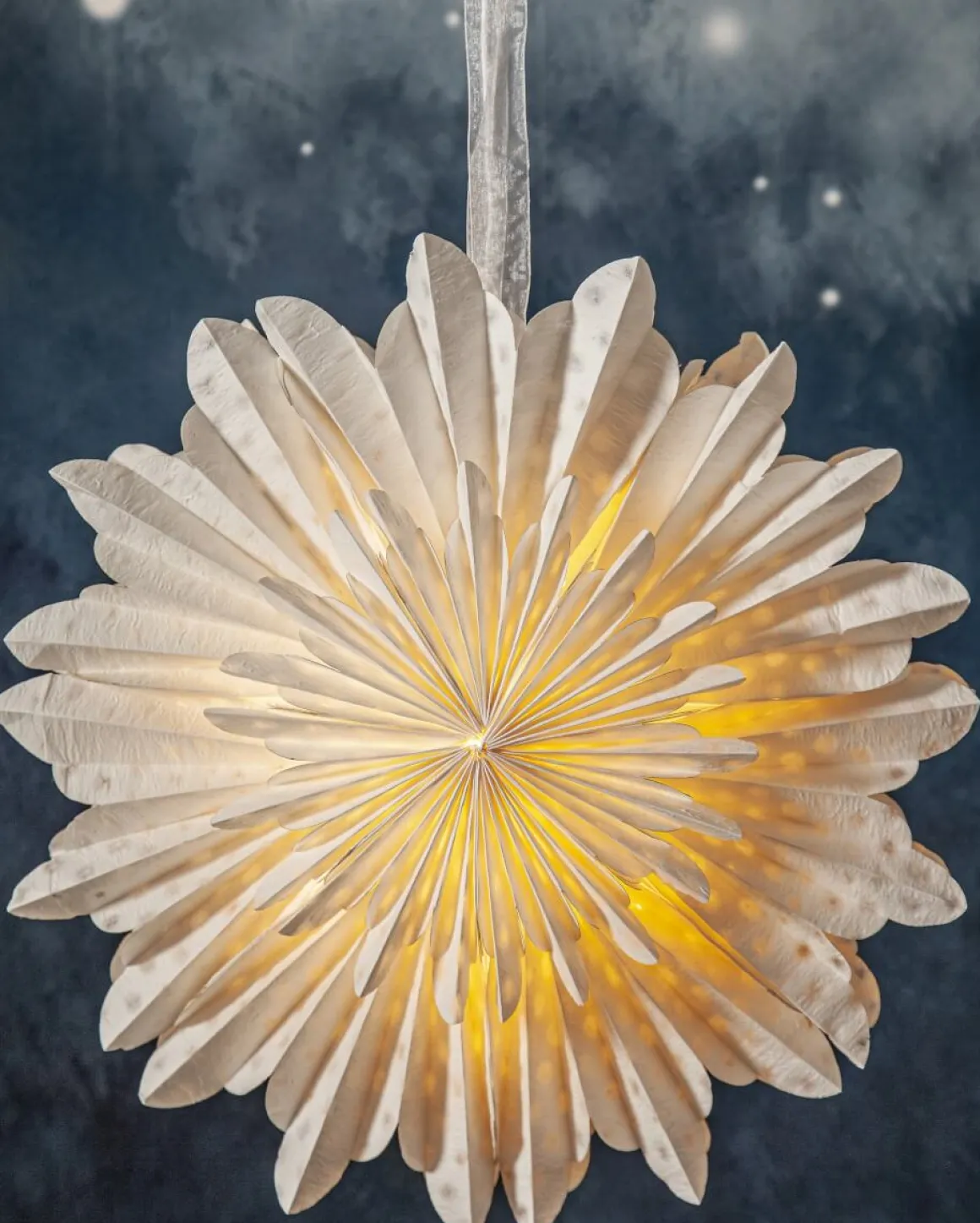 Cloud är en urtjusig pappersstjärna från Star Trading som är tillverkad av två lager veckat papper. Pappret är tillverkat av återvunnen bomullsspill från t-shirt tillverkning. Strukturen i pappret blir därför mjukt och i själva pappret ser man vattenstämplade prickar. Konturen har mjuka rundade flikar. Ett elegant band ingår för att lättare kunna hänga upp stjärnan. Stjärnan sprider stämning och ger hemmet den där speciella advent ochjulkänslan. Kan hängas både i fönster och mot en vägg. Sladdställ och ljuskälla köpes separat.