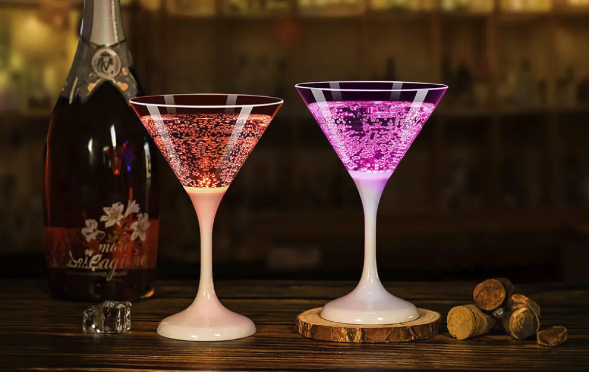 Batteridrivet cocktailglas som lyser upp dryck & bubblor i Rosa på ett superfestligt vis. Ljuset aktiveras när dryck finns i glaset. Perfekt till fest eller varför inte köpa som gåva!