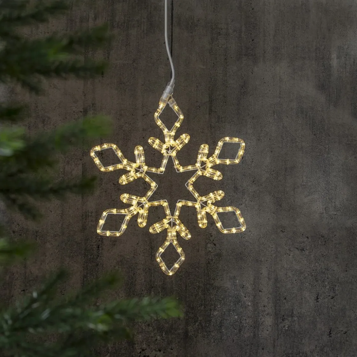 Kopplingsbar ropelightsiluett, snöflinga med varmvitt sken. Koppla ihop max 80W med hjälp av vår T-konnektor 484-22 och förlängningskablarna 466-26, 466-26-02. För utomhusbruk