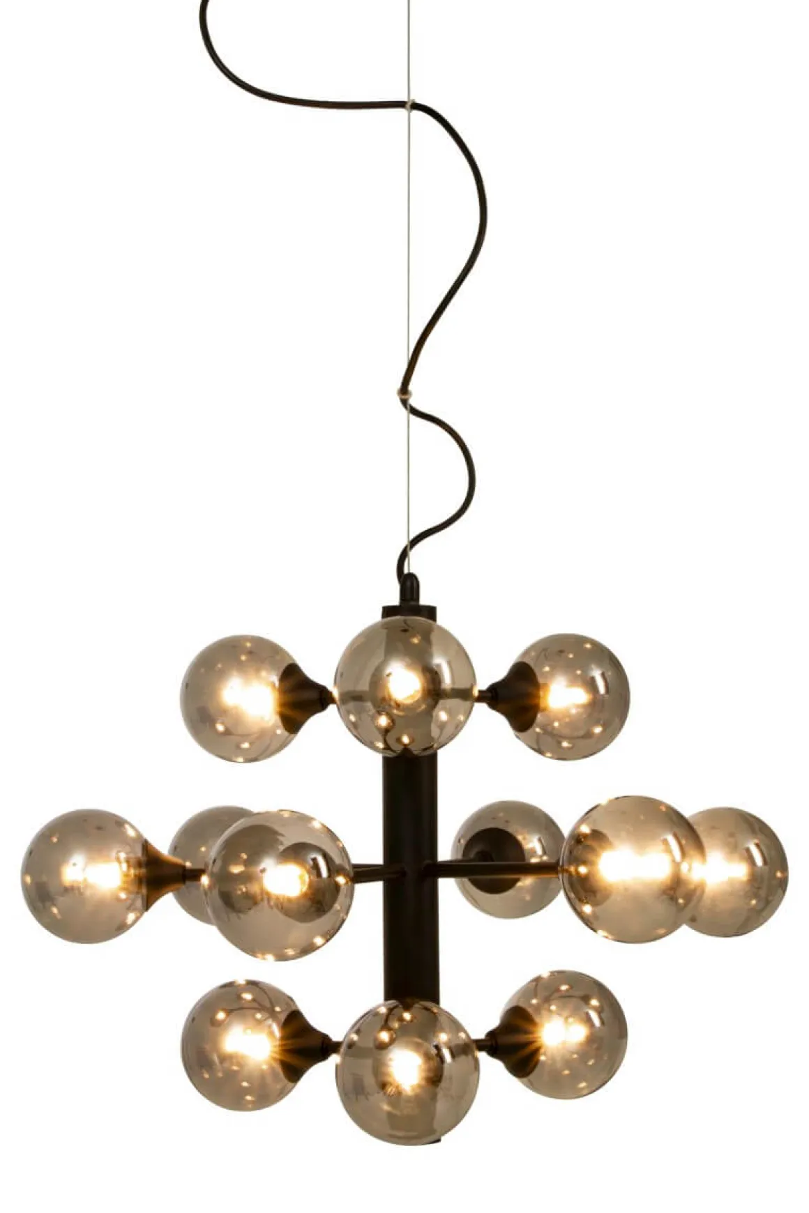 Cosmos taklampa från Aneta, härlig kombination mellan stommen i svart och de 12 rökfärgade kuporna. Här har du en taklampa som med enkelhet lyser upp ditt rum, inte gör den det helt obemärkt heller. För dig som är på jakt efter en lampa som får vara en del av inredningen är Cosmos en klar vinnare. Krokupphäng för enkel installation såklart. Missa inte att han även finns i svart med rökfärgade kupor.
