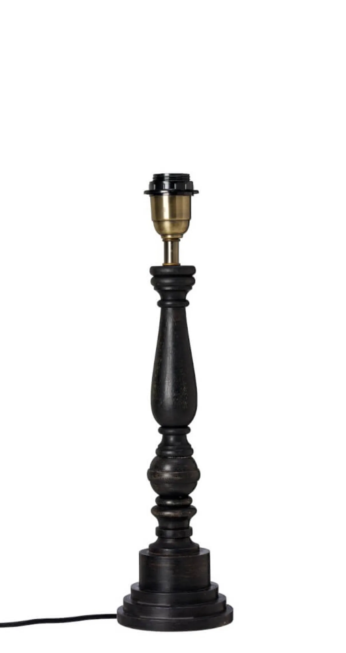 Så läcker snidad Lampfot i svartbetsad trä från Cottex med en höjd på 46 cm. En lampfot som ligger så rätt i tiden, kombinera med en läcker skärm för bästa effekt.