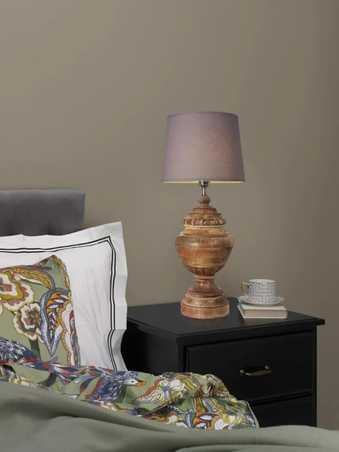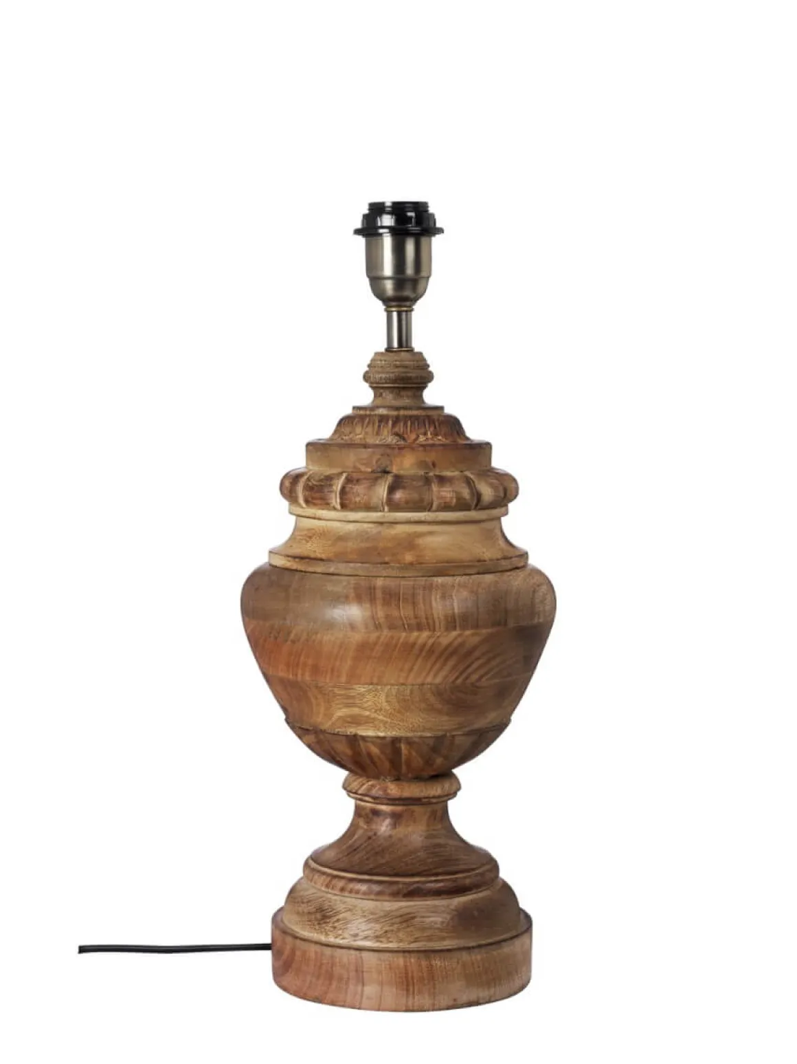Kolla in detta underverket från Cottex. En stor och bastant bordslampa i snidat trä med detaljer i antikmässing. Perfekt för dig som söker en lampa som är till för att synas och ta plats. Kombinera med en läcker skärm som du självklart väljer själv för bästa effekt.