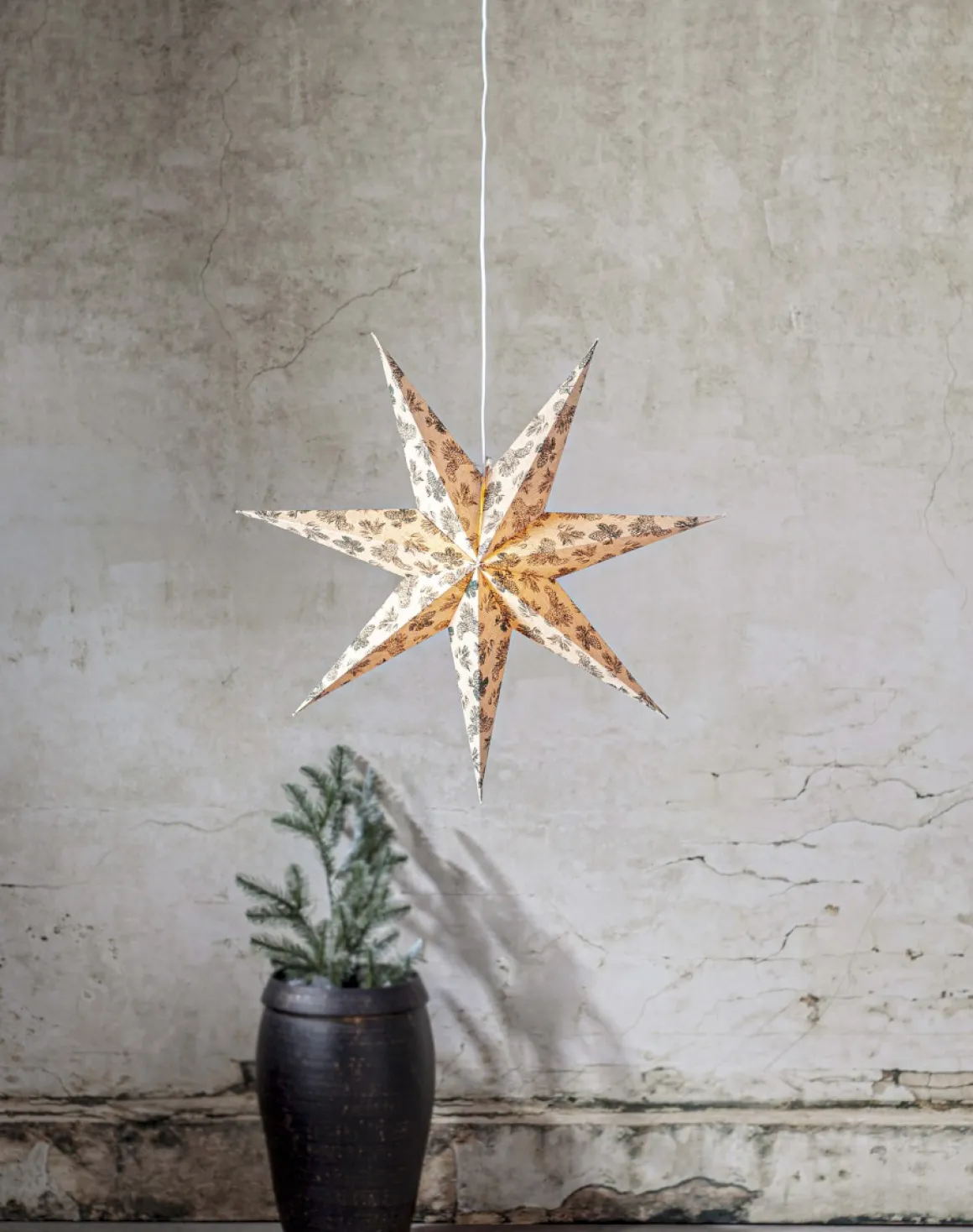 Pappersstjärna med FSC®-märkning från Star Trading. Den klassiska adventsstjärnan har ett fint vintrigt mönster i grönt med kottar och granbarr. Dekorera till advent för en härlig julstämning. FSC (Forest Stewardship Council) certifierar att papperet kommer från ansvarsfullt förvaltade skogar. Köp till sladdställ och ljuskälla för att få ljus i stjärnan och skapa en varm atmosfär under julsäsongen!