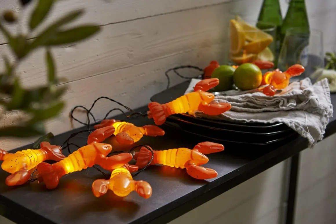 Batteridriven ljusslinga med kräftor för utomhusbruk. En härlig stämningshöjare att dekorera med till kräftskivan. Den inbyggda timern gör det lätt att ställa in när ljusslingan ska lysa.