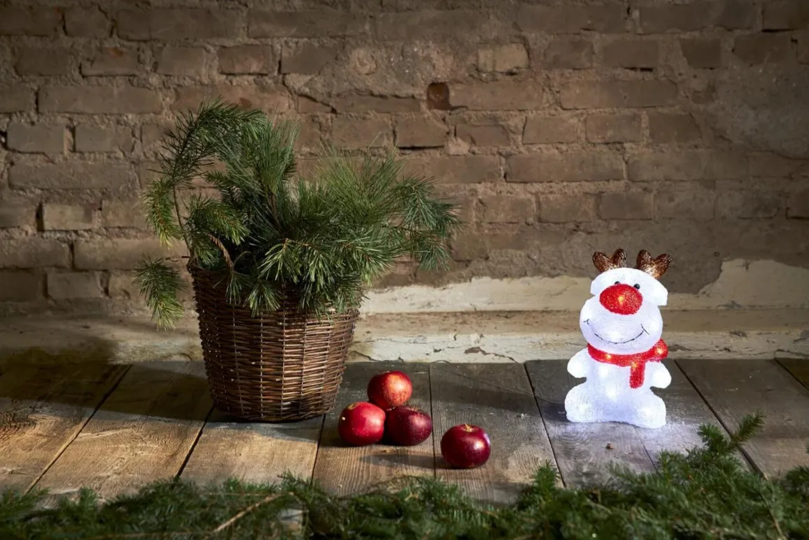 Dekorationsfigur i form av en så söt ren för utomhusbruk och inomhusbruk. Läcker dekoration att ha i trädgården eller varför inte i entrén. Renen har 40 stycken små LED-ljuskällor som ger ifrån sig ett fint och inbjudande sken.