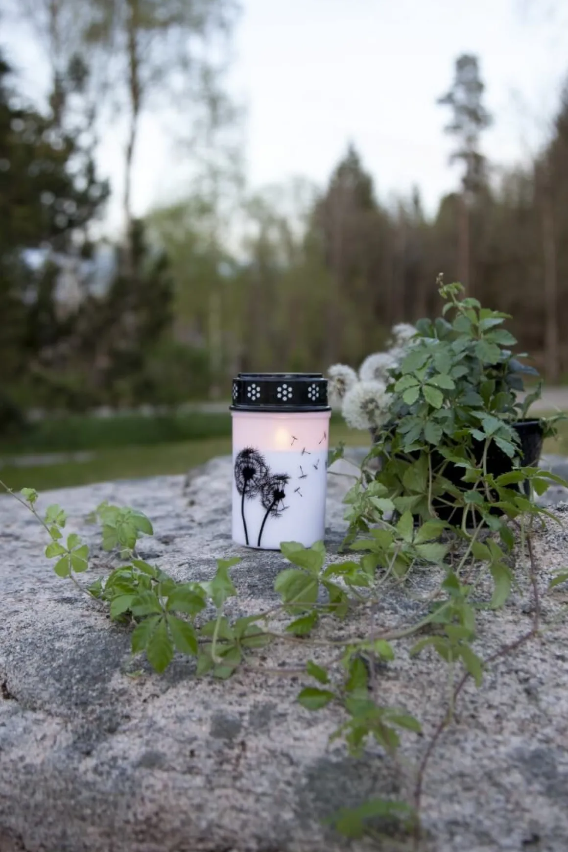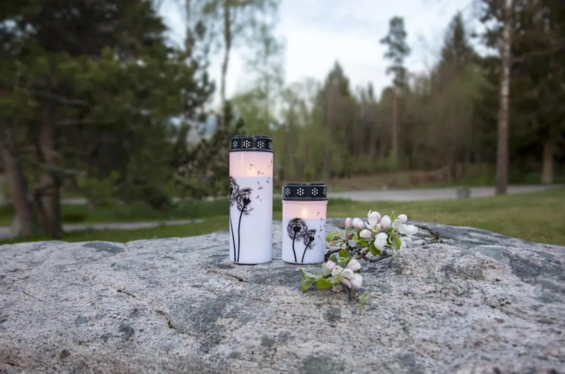 Gravljus från Star Trading med ett vackert maskros motiv med maskrosfrön som flyger iväg med vinden. Ljuset har en inbyggd timer så du enkelt kan ställa in när du vill att det ska lysa.