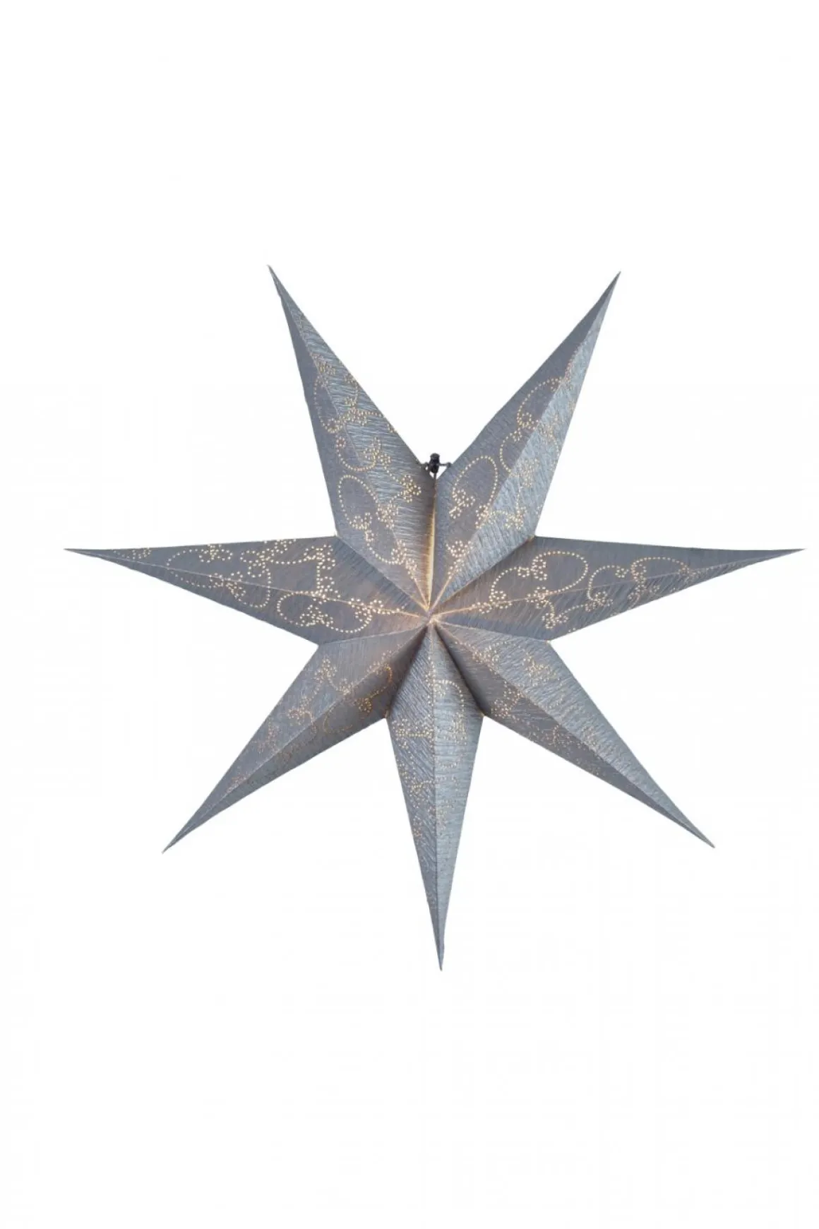 Lös pappstjärna med dekorativt mönster som är till för att hänga och skapa julstämmning i ditt hem, monteras enkelt på ett vanligt sladdställ.