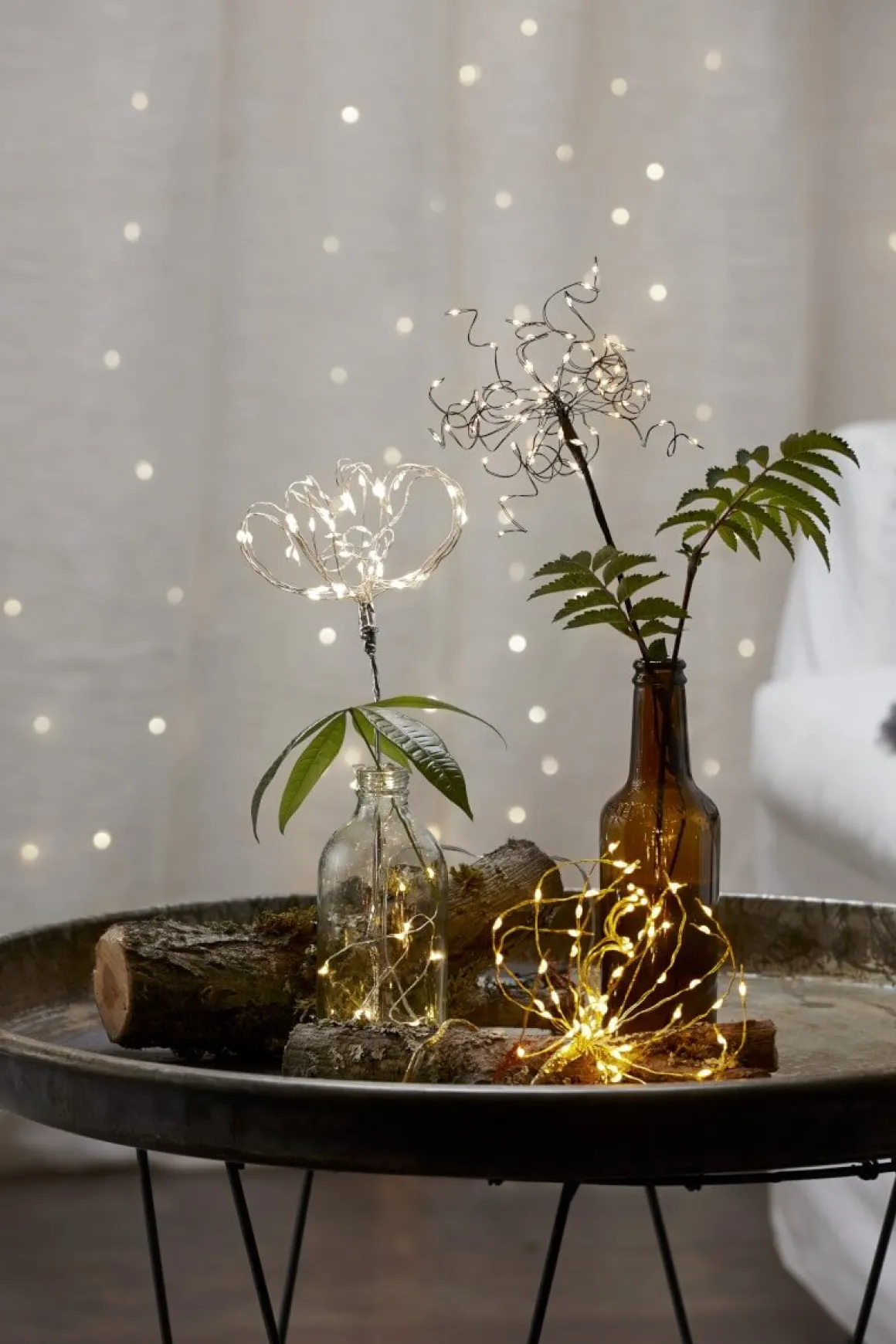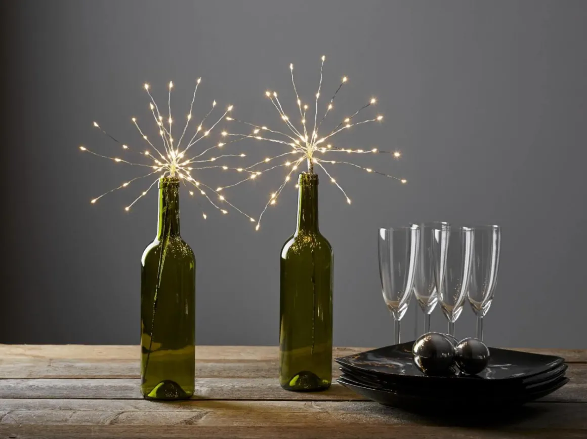 Nytt för i år i Dew drop serien är denna lilla batteridrivna buketten i silver med kallvita lampor, givetvis är hen bestyckad med en timer.