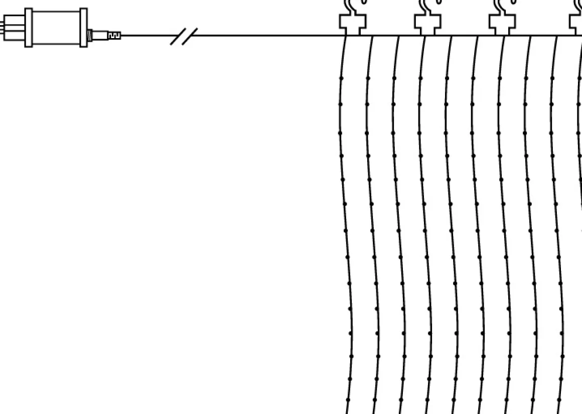 Underbar ljusgardin med populära dew drop nu för utomhusbruk såväl som inomhus. Ljusslingan har hela 200 varmvita LED-ljuskällor som avger ett vackert sken. Härlig dekoration att ha framme till vardags och fest. Gardin med 10 strängar, 1 meter bred och 2meter lång..