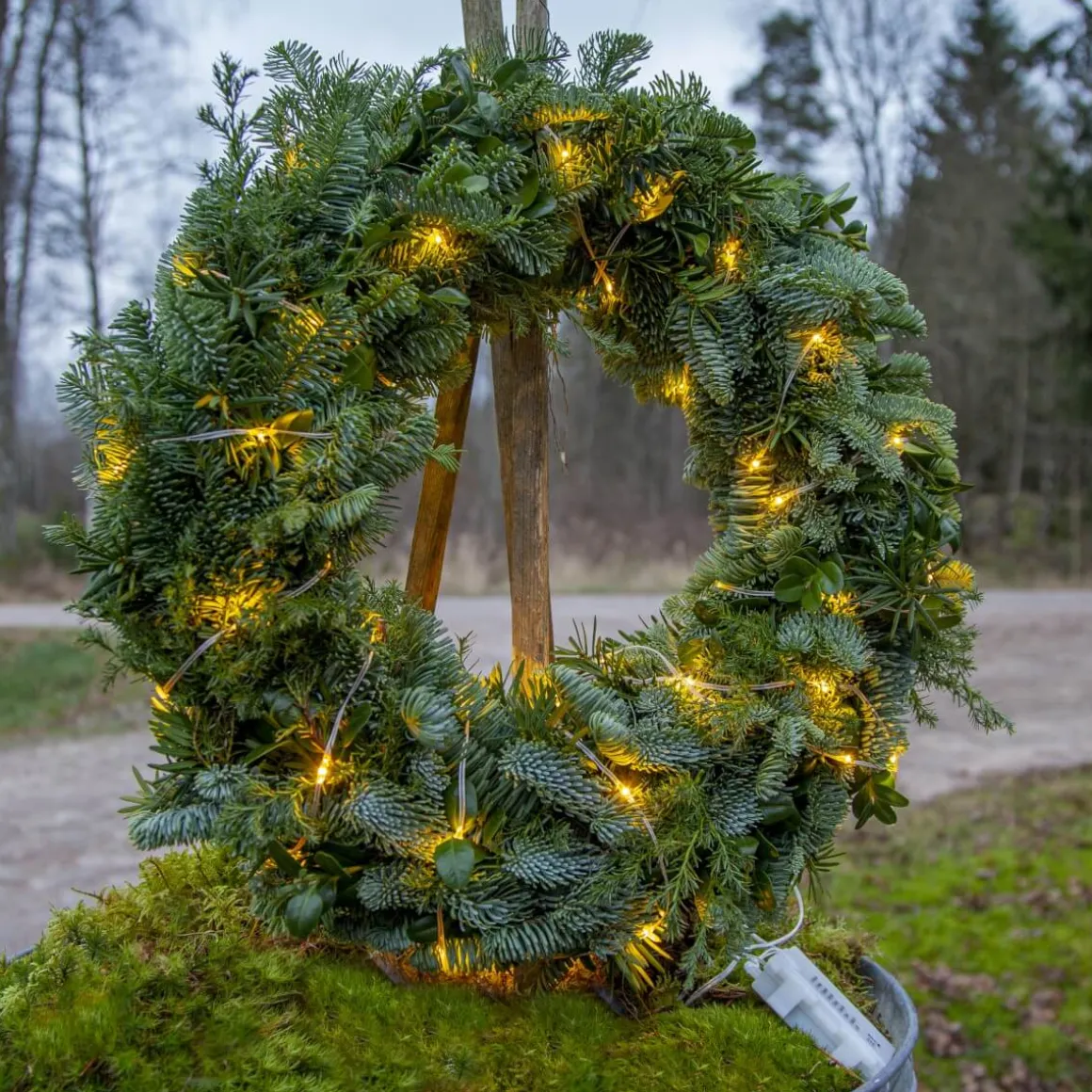 Tunn platt batteridriven slinga från Star Trading med små söta ljuspunkter för utomhusbruk, perfekt och enkel att använda i träd, buskar, kransar, trappräcken ja lite överallt. Denna ljusslingan har transparent kabel med 96 varmvita LED, 7,5cm mellan varje lampa ger en slinga på ca 7 meter. Batteribox med timerfunktion så att du lätt kan ställa in när du vill att den ska lysa och 8 olika blinksekvenser varav en självklart är med fast sken.