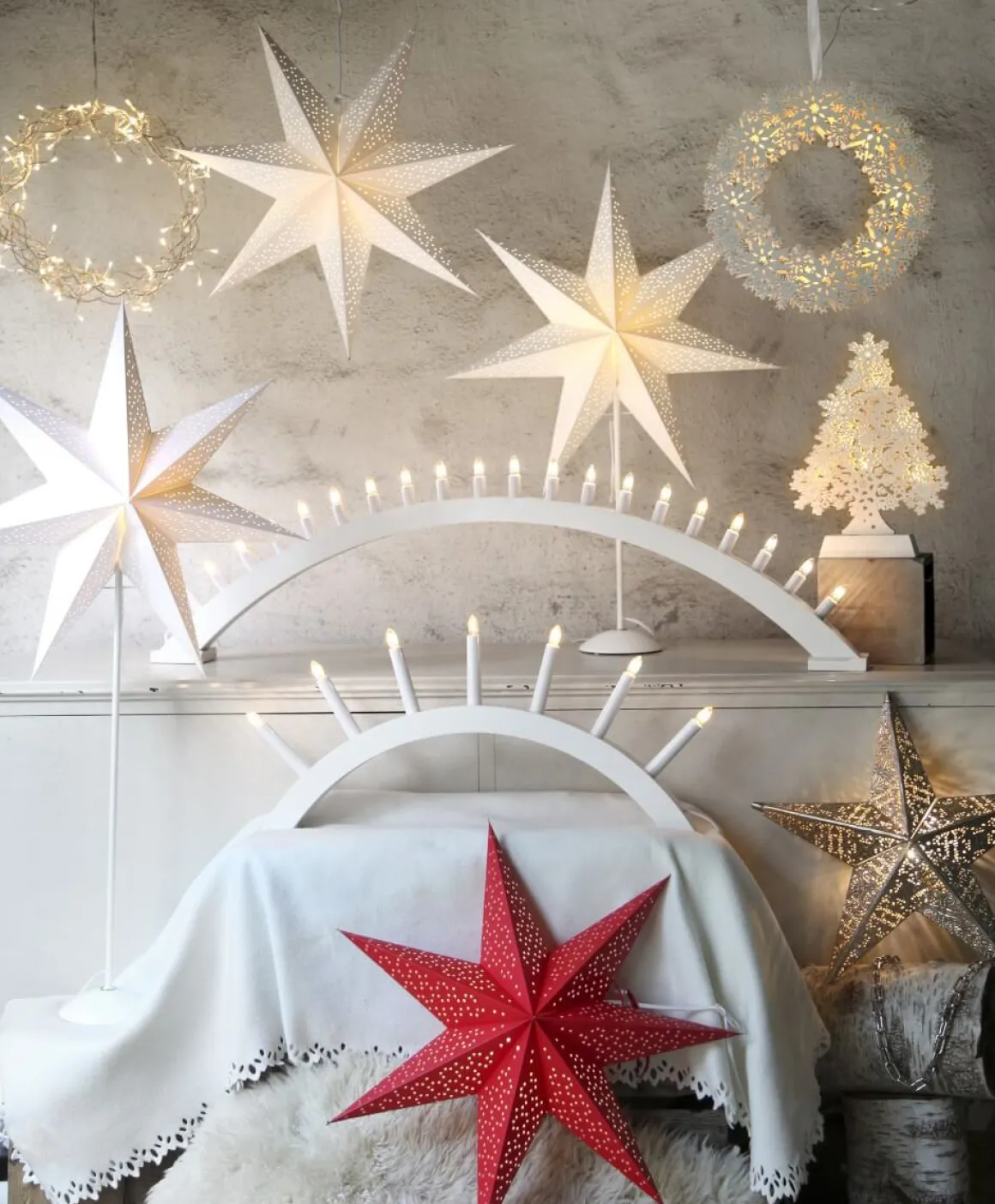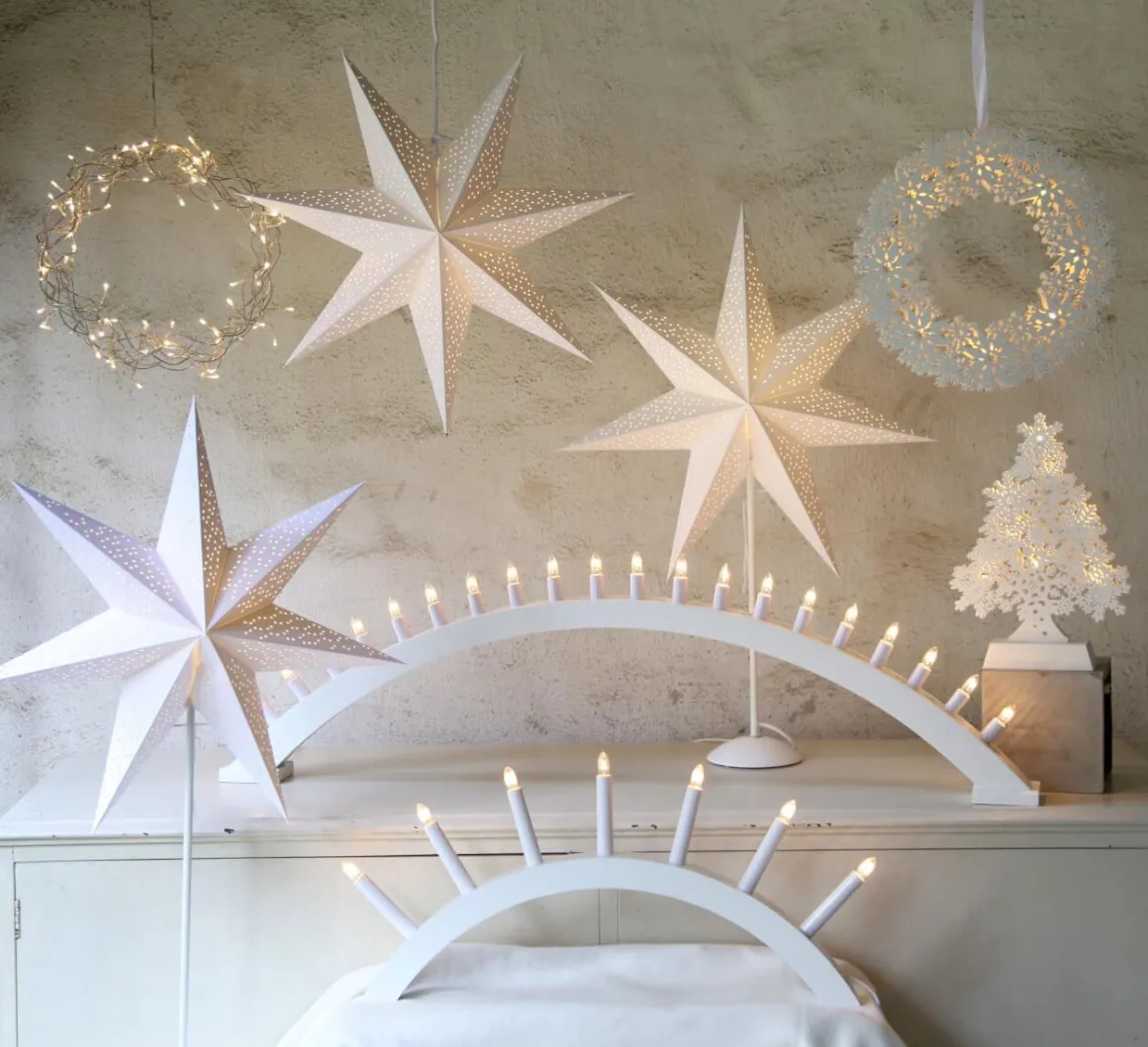 Läckert mönstrad pappersstjärna från Star Trading. Fin stjärna att dekorera med för att komma i den rätta julstämningen, Dot finns i 3 färger och 3 storlekar, här ser du den lilla på 54cm i vitt. Sladdställ ingår.