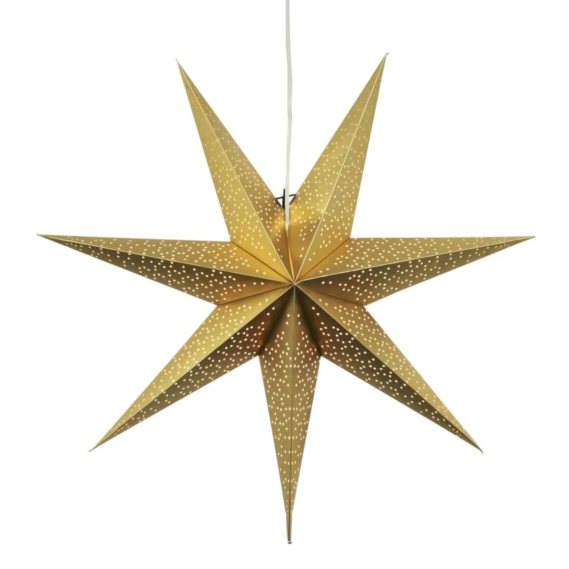 Läckert mönstrad pappersstjärna från Star Trading. Fin stjärna att dekorera med för att komma i den rätta julstämningen, Dot finns i 3 färger och 3 storlekar, här ser du den mellersta på 70cm i guld. Sladdställ ingår.