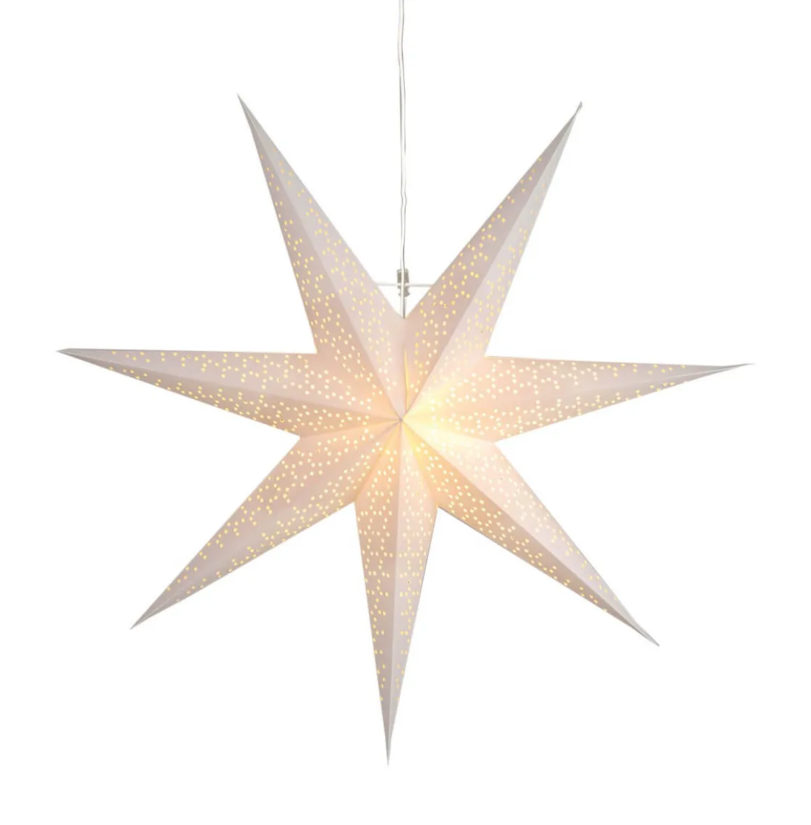 Läckert mönstrad pappersstjärna från Star Trading. Fin stjärna att dekorera med för att komma i den rätta julstämningen, Dot finns i 3 färger och 3 storlekar, här ser du den mellersta på 70cm i vitt. Sladdställ ingår.