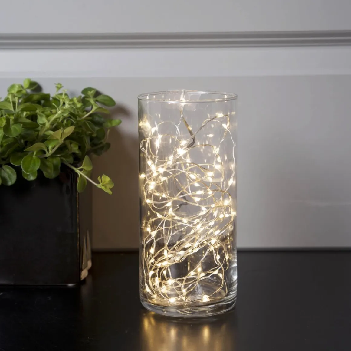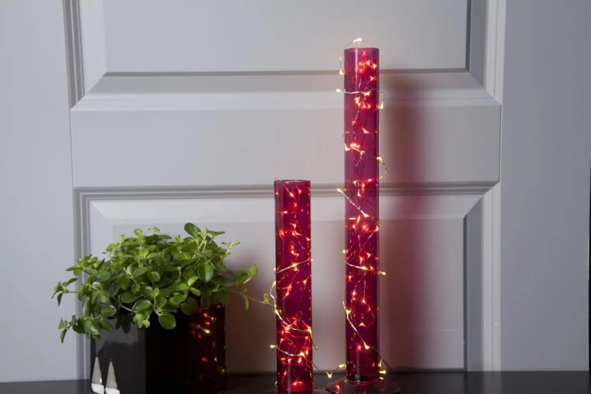 Dekorativ ljusslinga med 100 stycken kallvita LED dew drops från Star Trading. Perfekt vid diverse dekorationers om tex dukningar, blomsterarrangemang, i fönster, på väggen osv.
