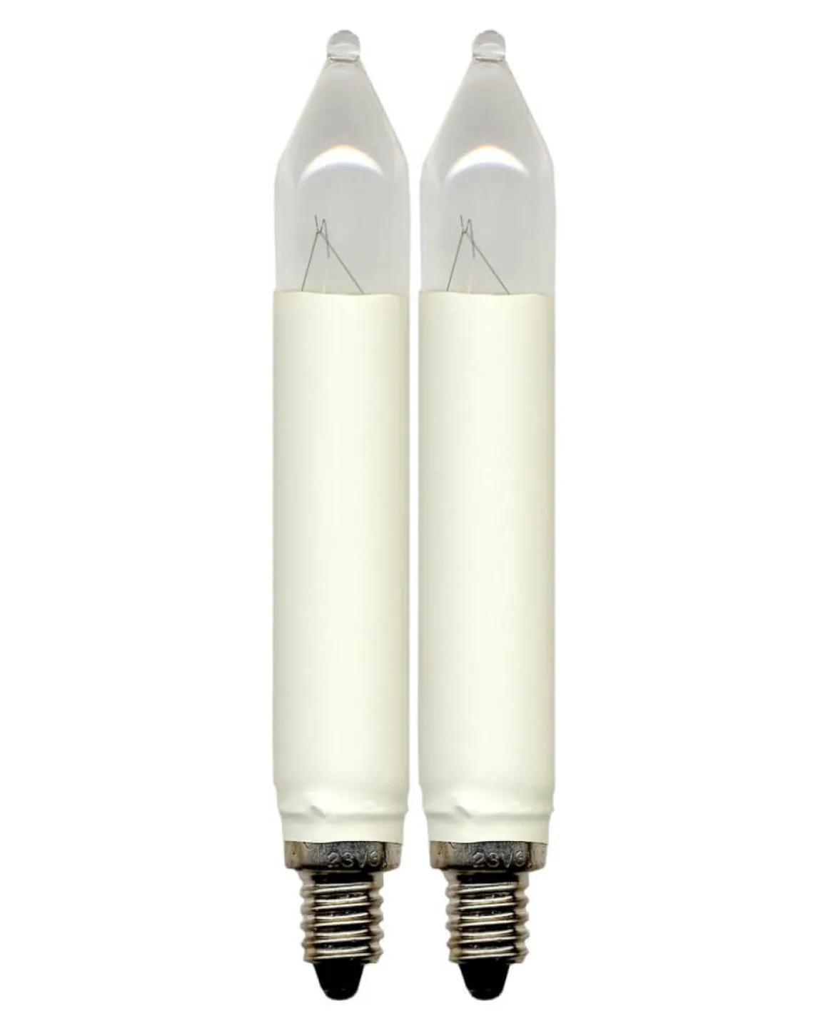 2-pack skaftlampor med E10 sockel, 8V. Dessa ljusen passar till julgransslingor med 30 ljus.