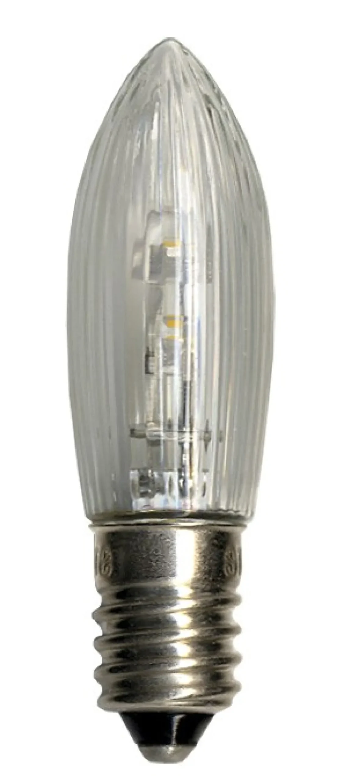 Universal LED Bulb reservlampa i 3-pack med E10 sockel, 10-55V. Denna produkt passar till våra 5-armade ljusstakar med stickkontakt.