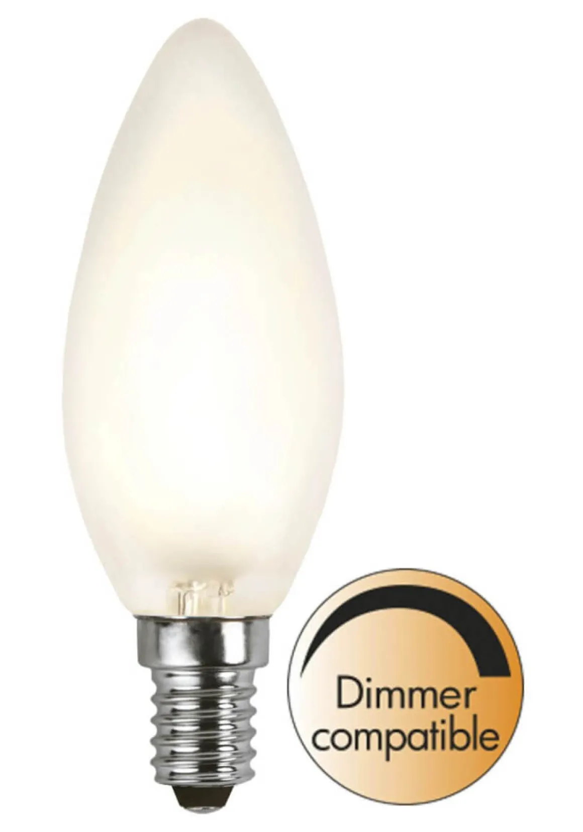 Matt LED-lampa medE14-sockel. Färgtemperaturen är 2700k och ljusflödet är 400lm.