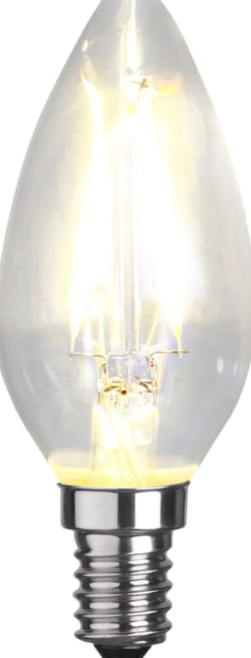 Klar LED-lampa med E14-sockel. Färgtemperaturen är 2700k och ljusflödet är 150 lumen.