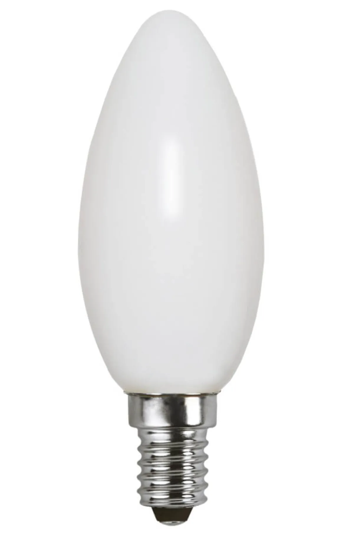 Helt opal LED lampa från Star Trading med hög färgåtergivning, RA90. E14-sockel och varmvitt ljus på 3000K. Denna ljuskälla är lika fin under skärm som den är utan. Den är även dimmerkompatibel.