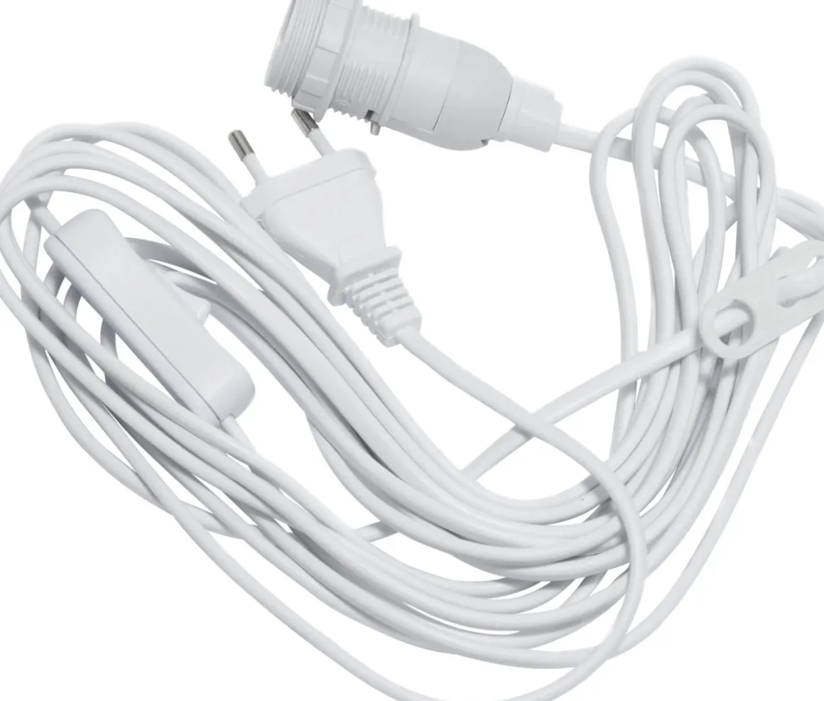 Komplett sladdställ, sladden är 5m och har brytare och väggkontakt. Kombinera upphänget med en snygg ljuskälla. Passar alldeles utmärkt till julens alla läckra pappersstjärnor.