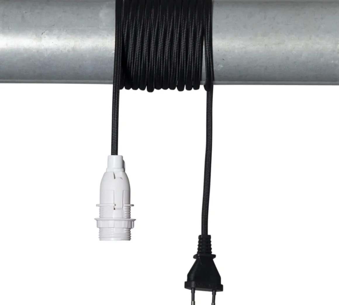 Sladdställ med textilöverdrag från Star Trading i svart. Sladden är hela 3,5m med vanlig väggkontakt. Detta upphänget passar alldeles utmärkt till julens alla läckra julstjärnor.