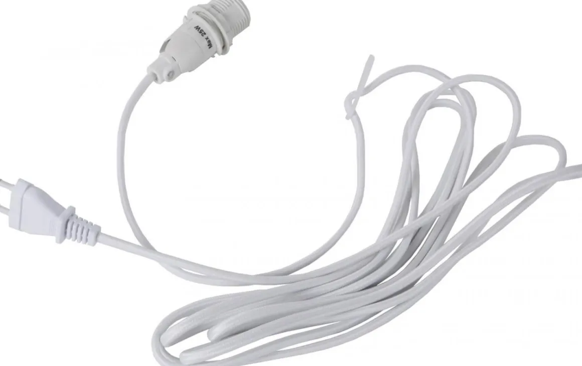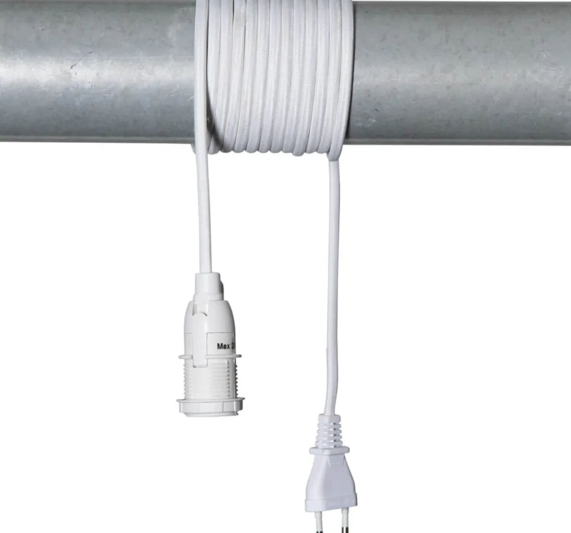 Sladdställ med textilöverdrag från Star Trading i vitt. Sladden är hela 3,5m med vanlig väggkontakt. Detta upphänget passar alldeles utmärkt till julens alla läckra julstjärnor.