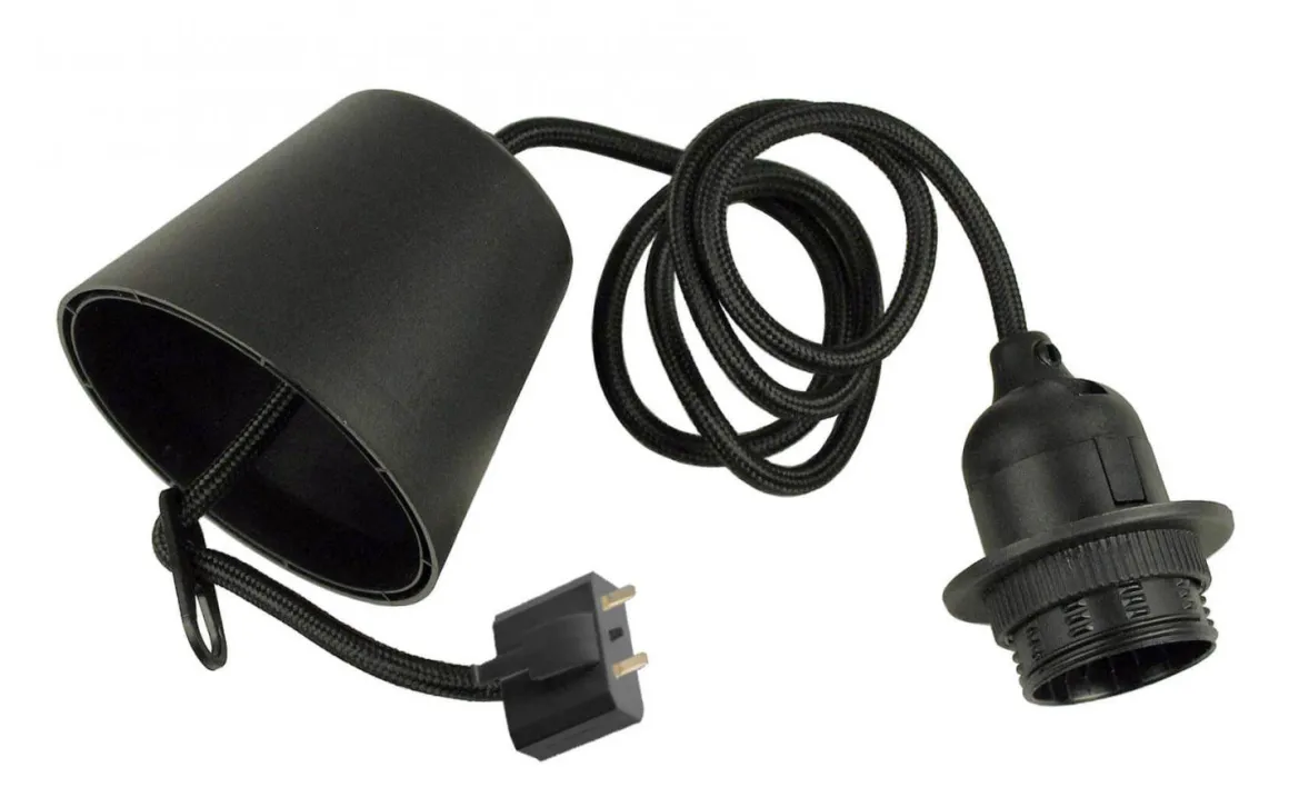 Svart upphäng med textilkabel, DCL-kontakt och E27 hållare.