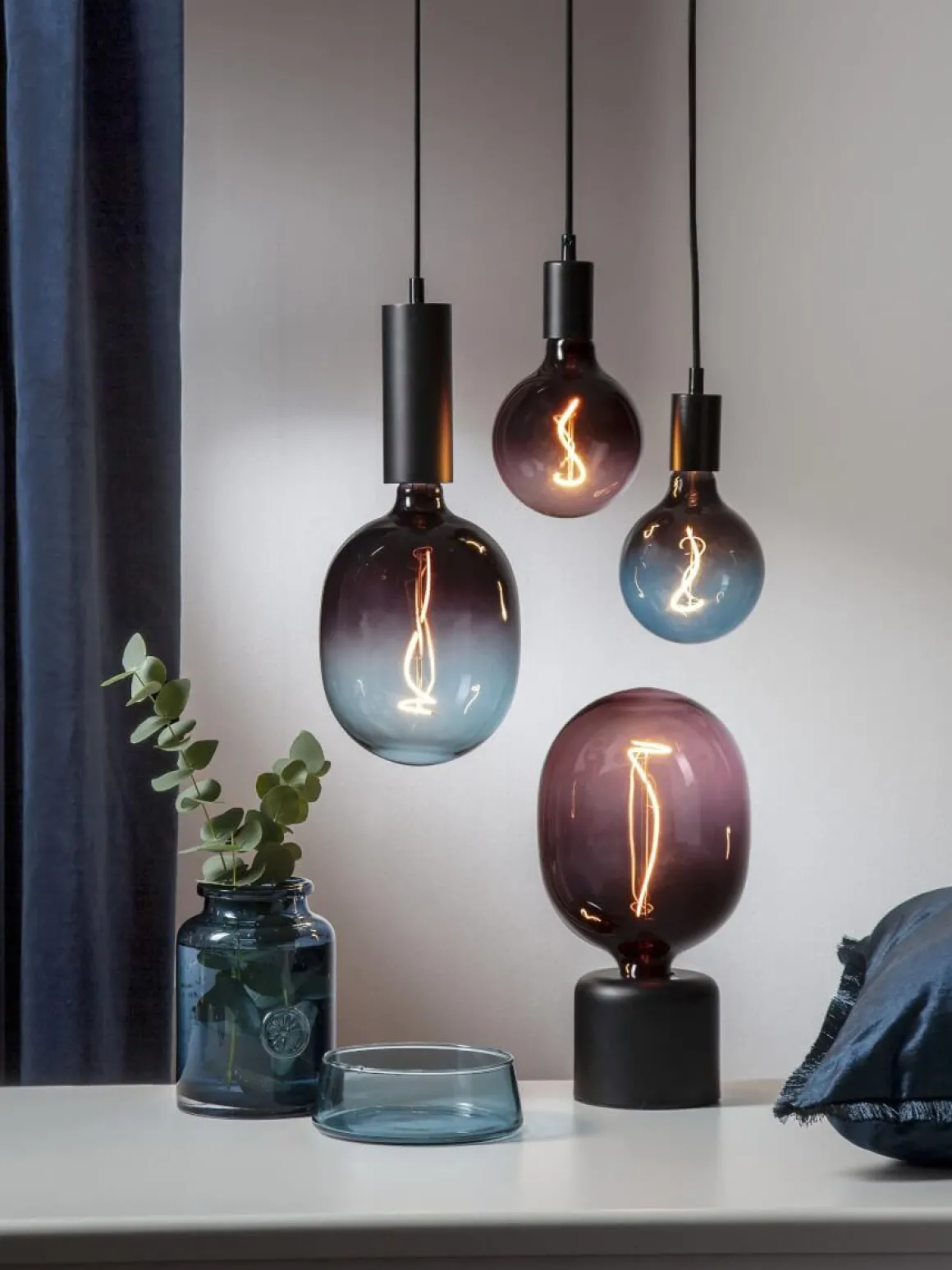 Läcker LED-lampa från Star Trading med spännande form och tvåfärgat läckert glas. Ger ett mysigt och varmt behagligt sken. Lämpar sig ypperligt för dekorationsbelysning och passar perfekt i ett fönster eller på en skänk..