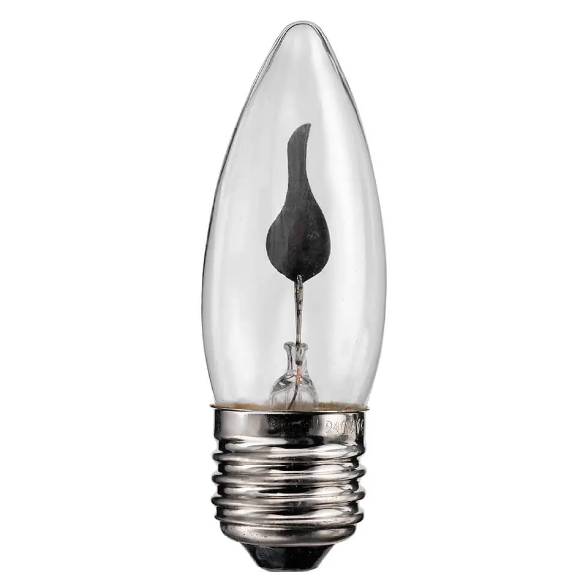 Dekorativ glödlampa där skenet liknar en eldsflamma. Inuti gashöljet sitter en liten låga som flammar. Lampan har E27-sockel och klar glaskropp.